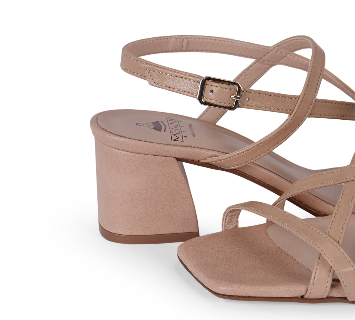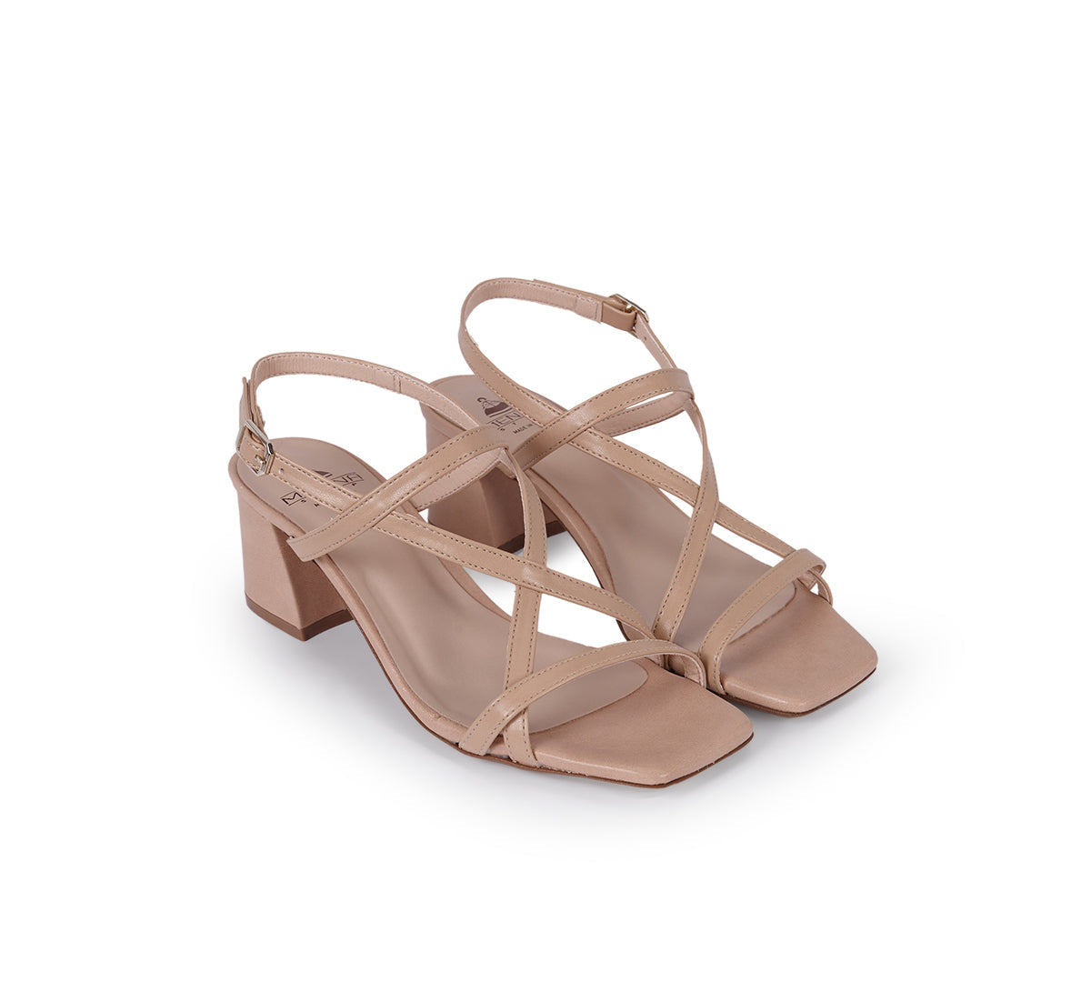 - Crisscross straps with an adjustable side buckle