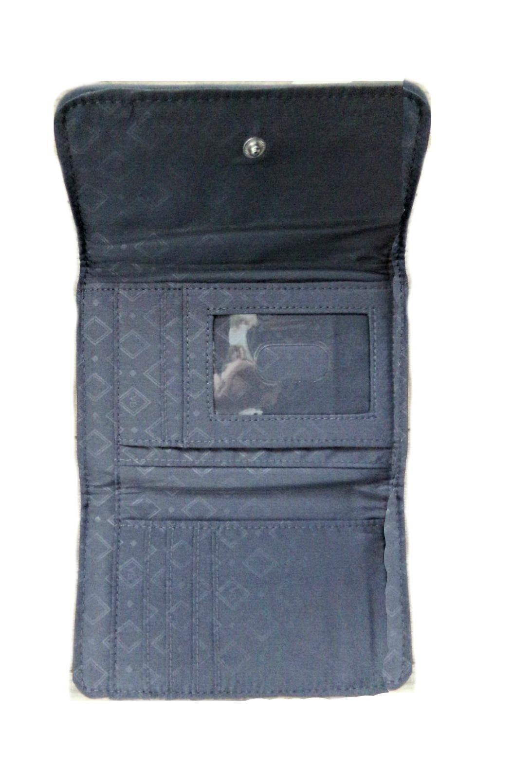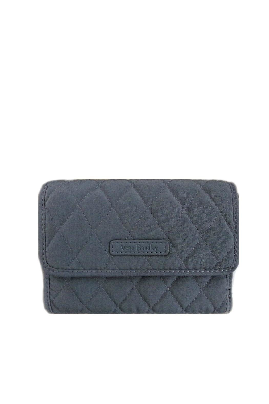Here is the Vera Bradley Euro Wallet in the color "Carbon Gray". This small but mighty compact wallet is just right for smaller crossbody and clutch bags! There's plenty of room for cash, cards, coins and your ID. Exterior features a zip coin pocket and engraved signature detail, and it closes with a pin snap under the front flap. Interior features 5 card slips, one large bill slip, one ID window and three additional slip pockets. Microfiber exterior is built to last, and inside is a beautiful signature poly satin lining. Click "Mimi's Gift Gallery" to find many other bags and accessories in the color Carbon Gray. Dimensions are 5.5" wide x 4.25" high x 1 ¼" deep (closed). 5.5" wide x 10.25" long (open).