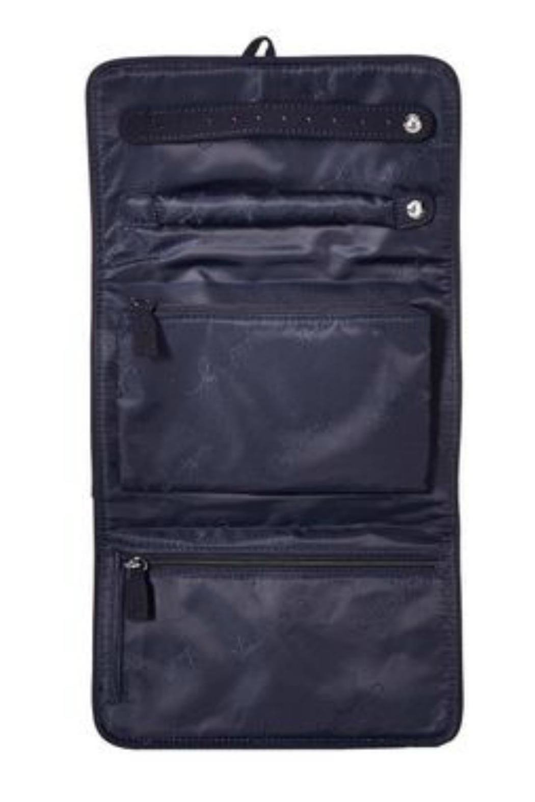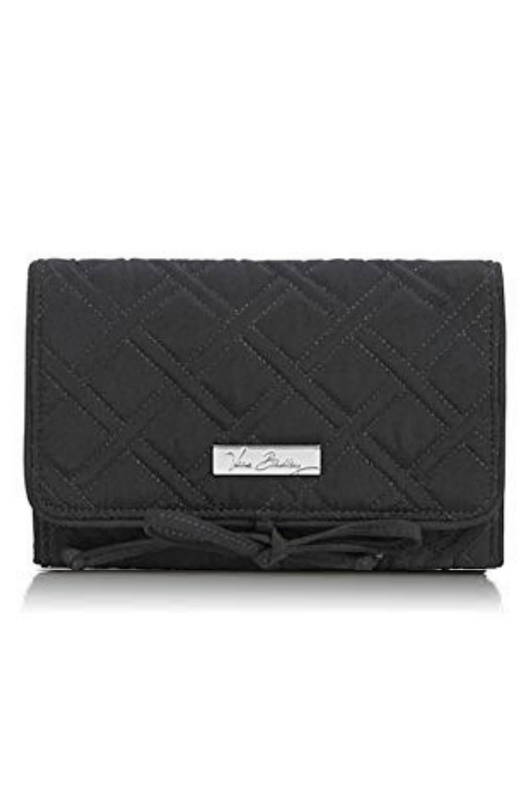 This is the Vera Bradley All Wrapped Up Jewelry Roll. Made of quilted water resistant microfiber material. Tie closure. Signature logo imprinted detail in front. Click on "Mimi's Gift Gallery" to find other bags and accessories in the color Classic Black.