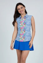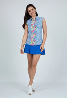 Carrie Print Sleeveless Polo in Blue