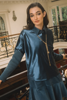 Elevate your everyday wardrobe with this refined mixed-media top that seamlessly blends textures and silhouettes. The luxurious satin front pairs beautifully with a comfortable knit back, creating visual interest and versatile styling options. Relaxed drop shoulders and long knit sleeves offer a contemporary ease, while the crew neckline keeps the look polished. Practical side slits add movement and dimension to this sophisticated piece—perfect for layering or wearing solo.