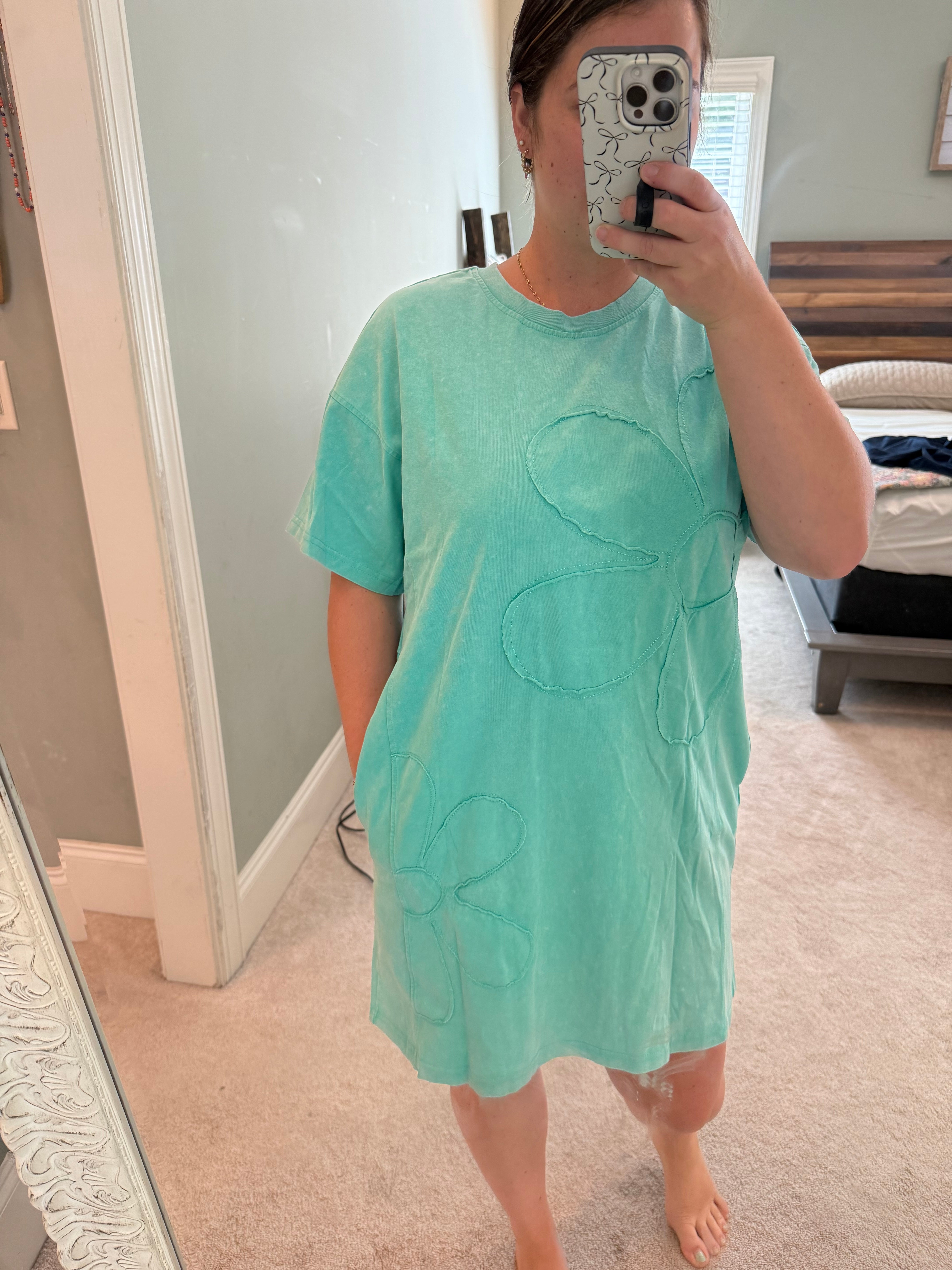Flower T Shirt Dress- Green