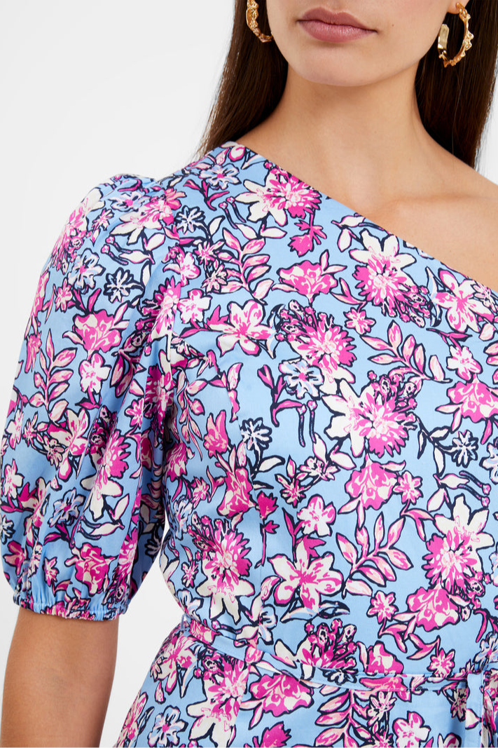 Fontini One Shoulder Puff Sleeve Mini Dress- Placid Blue