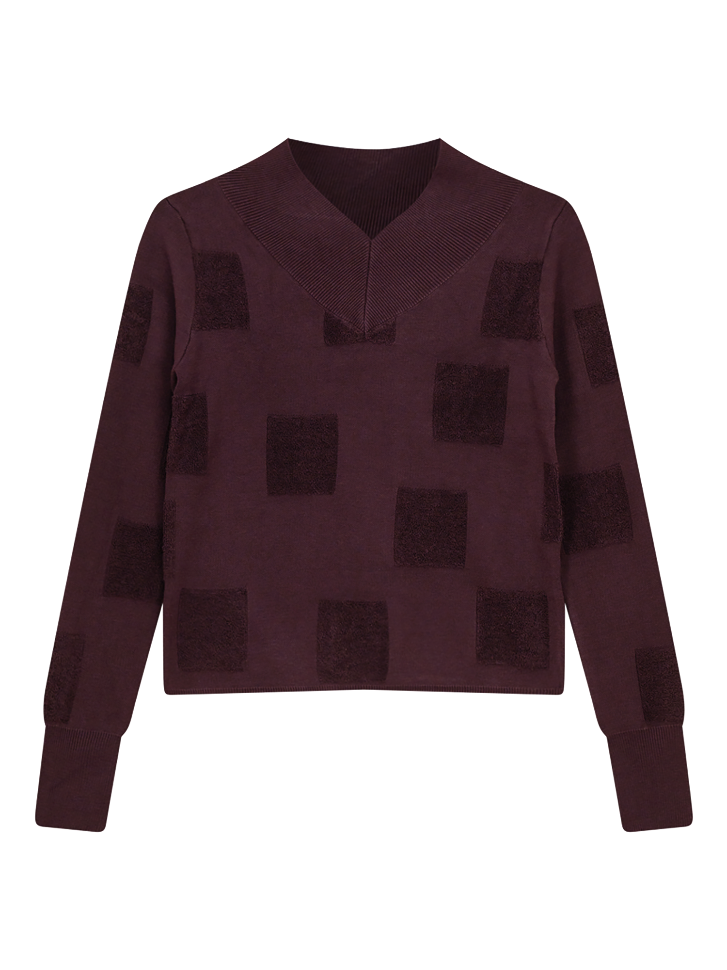 •LOOK: This V-neck long sleeve knit sweater has texturized patches sporadically placed throughout giving dimension and adding interest promoting its versatility. Wear it casually with jeans or with skirts to work. Hip length and roomy enough to layer over another top.