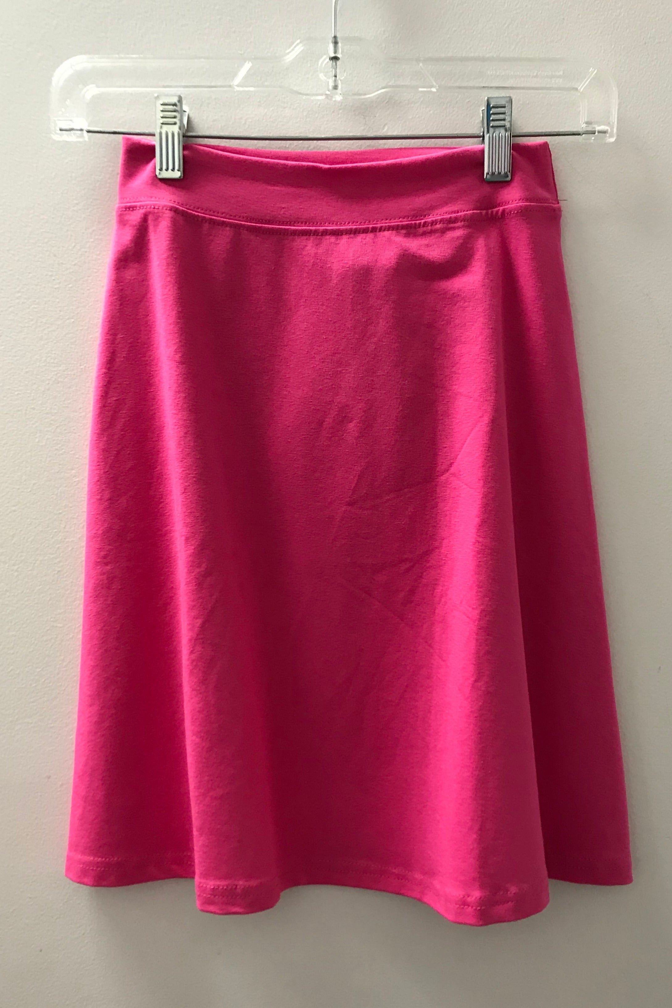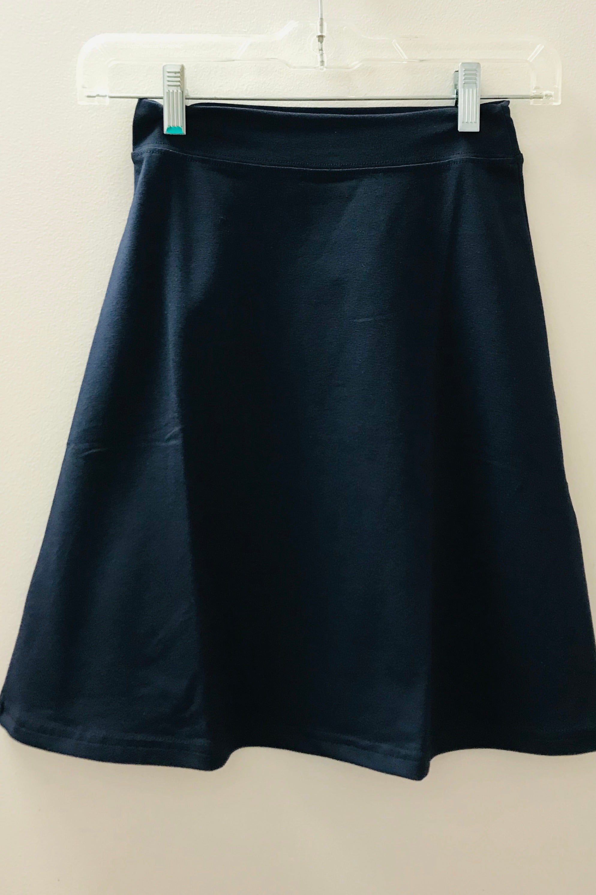 Cotton, pullon A-line skirt. Easy to wear. Knee length.