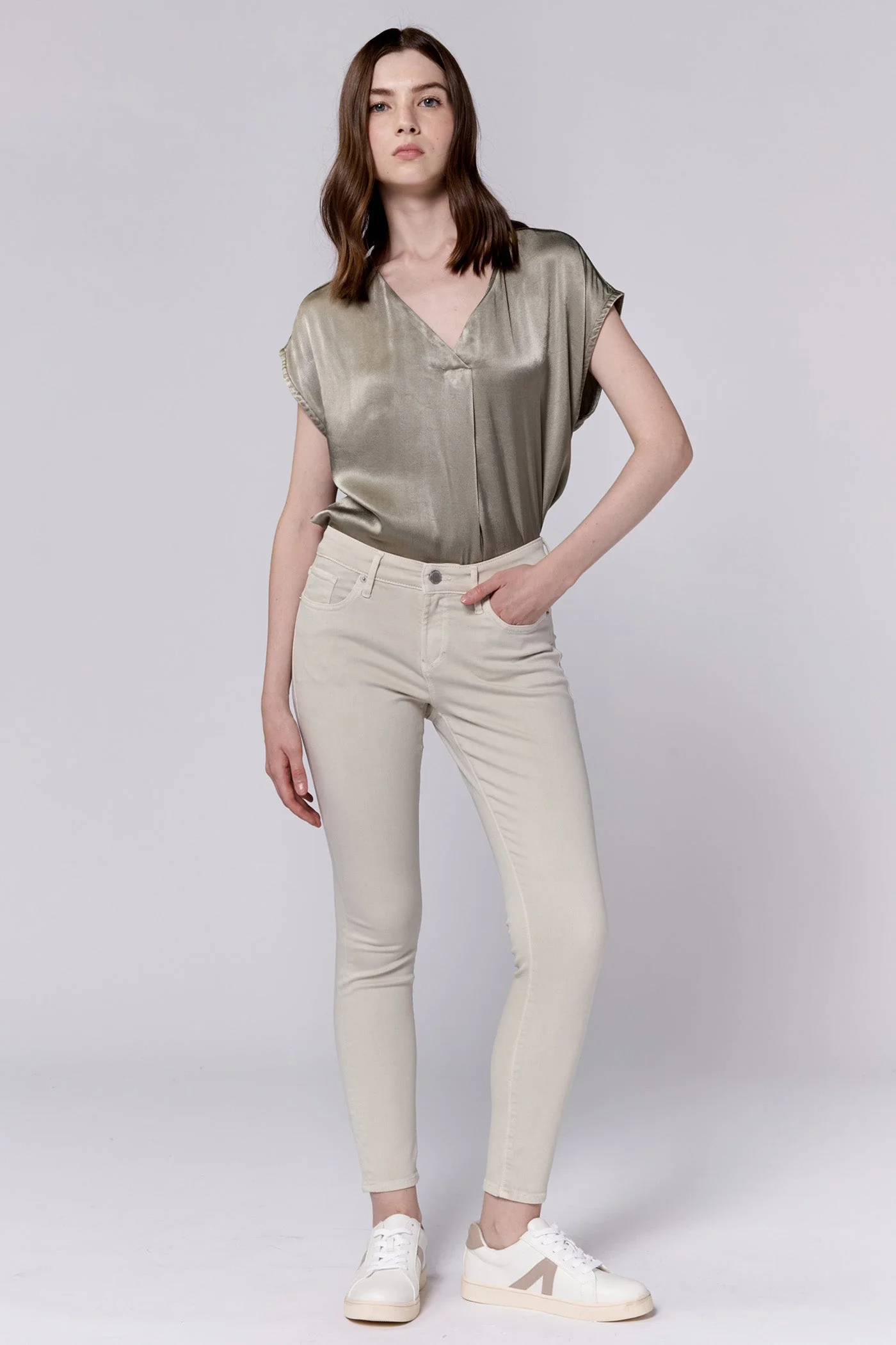 DESCRIPTION Delight in the Gisele mid rise ankle inseam jeans in colorful palettes, these are a stylish and essential addition to any fashion wardrobe. Designed with a flattering skinny cut in stretch twill that offers a contemporary fit, feature a clean hem for a polished look. Perfect for versatile outfits, they effortlessly transition from casual days to more formal occasions. 90% COTTON, 8% POLYESTER , 2% SPANDEX Machine wash cold, Tumble dry low Zip fly and button closure Five-pocket style Imported The Gisele offers contemporary fit with stretch & simplicity, here are the detailed measurements: Inseam: 28", Front Rise: 9 1/2", Back Rise: 14", Leg Opening: 10" (The model shown is wearing size 27) Crafted with comfort in mind, these jeans are the epitome of comfortable clothing ensuring you feel as good as you look.
