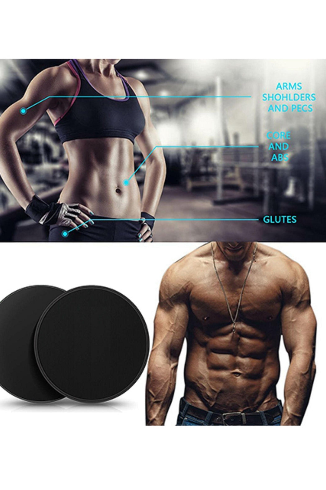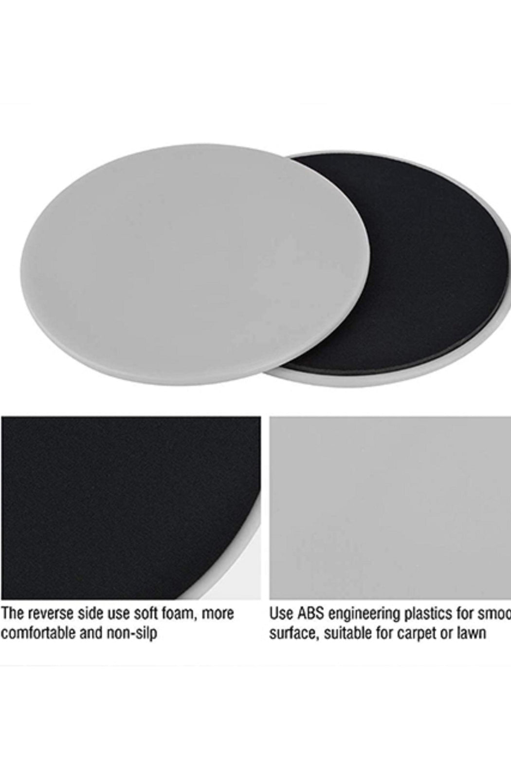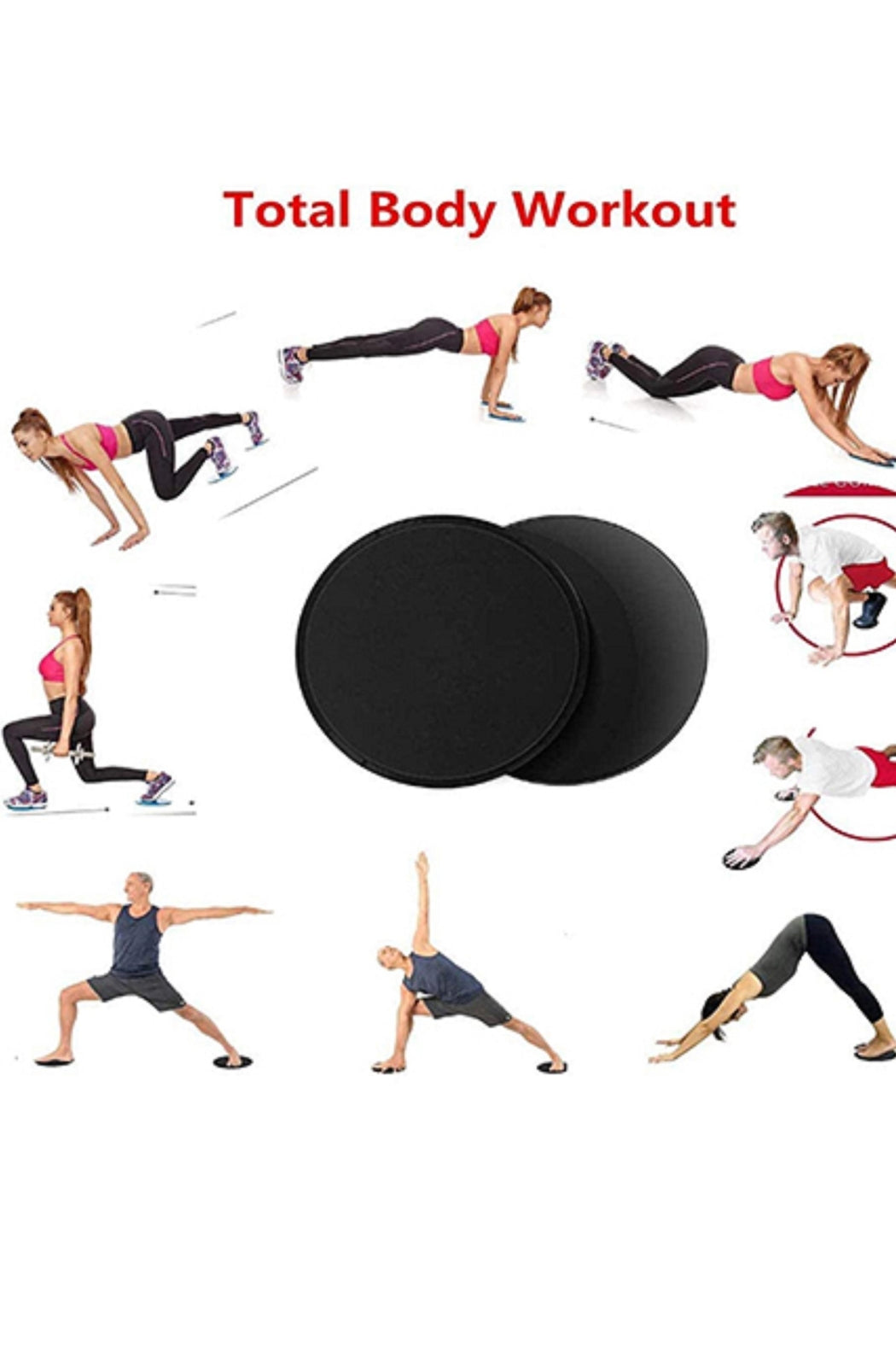 Gliding Discs - Fitness Discs For serious Fitness enthusiasts Home Workout - works best with hard surfaces Gym Use Tone your muscles. Core training. See pictures for full body workout Diameter: 7" Material: ABS + EVA Weight: Light - 7 oz Color: Black
