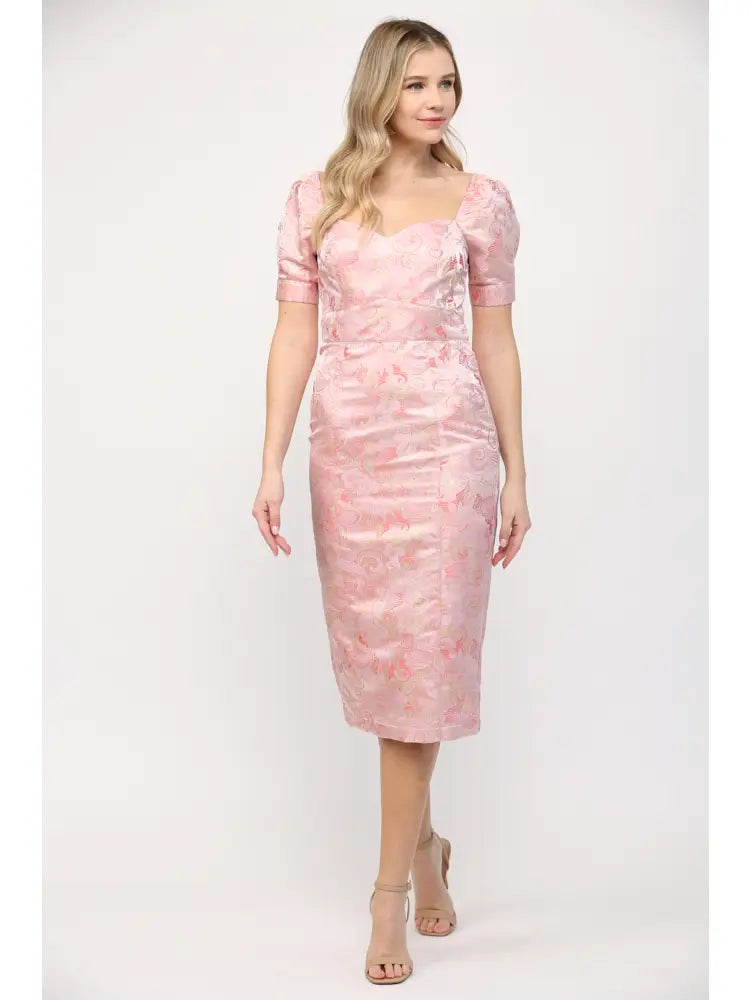 Elevate your style with our Jaquard Dress. Crafted from high-quality fabric, this fitted dress features a unique Jaquard pattern and short sleeves for a chic and comfortable look. Perfect for any occasion, this dress is a must-have for any fashion-forward wardrobe.