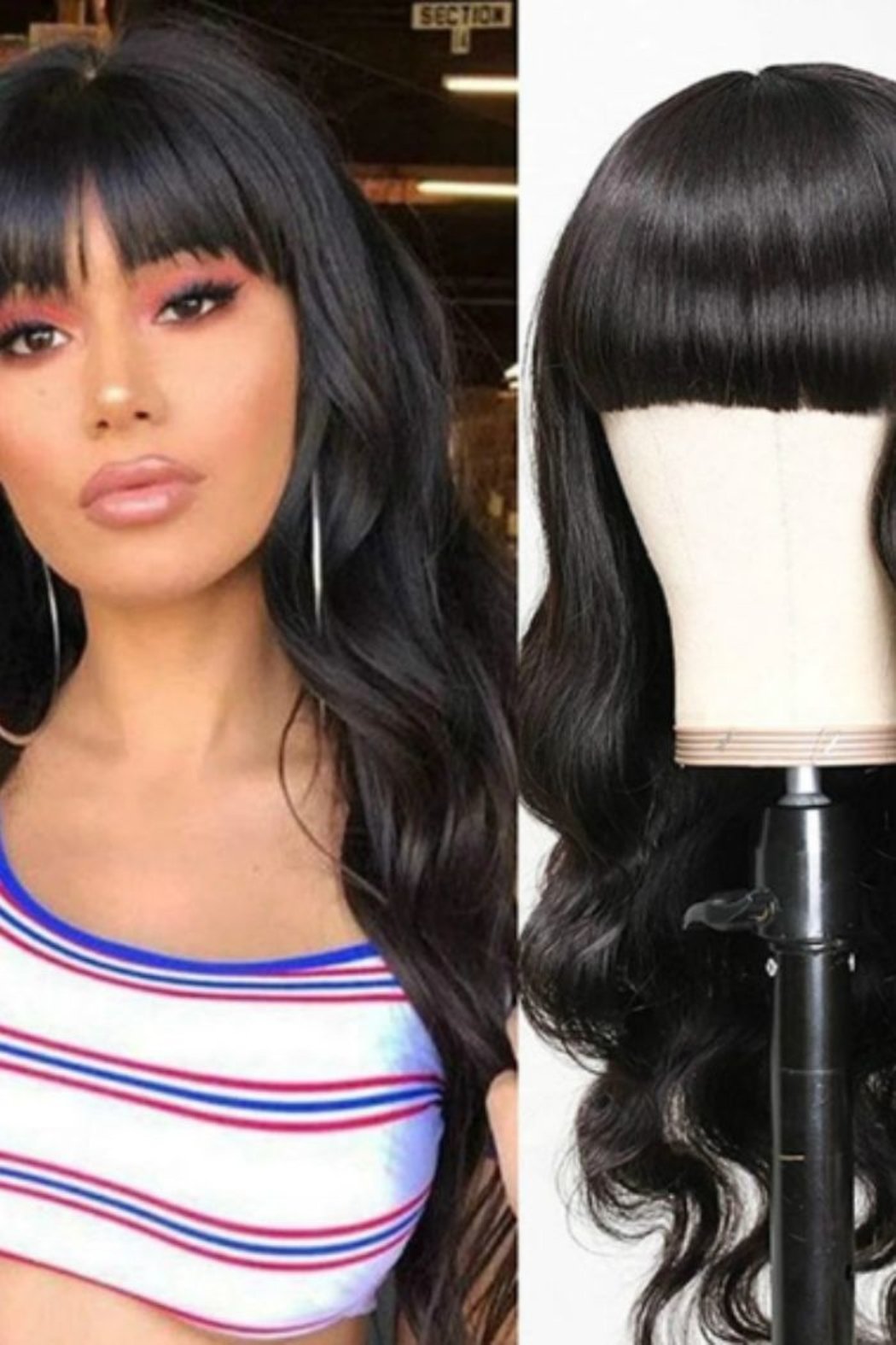 Long Wavy Black Hair Wig With Bangs - Back Length