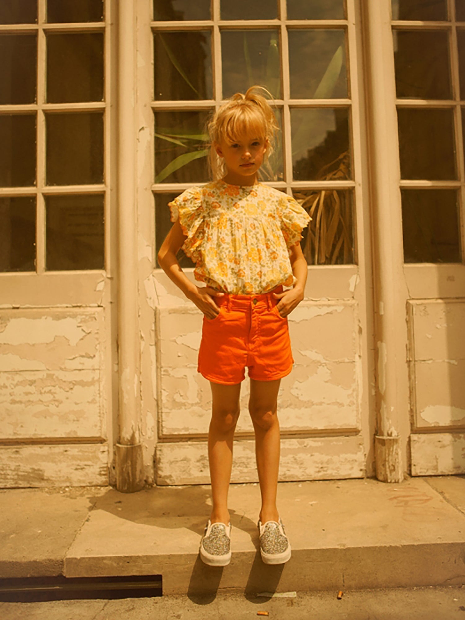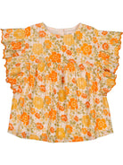 •LOOK: Springtime girl looks so fresh and happy in this lightweight cotton tunic. The floral print is uplifting and the flutter sleeves are so dainty. Fully lined, back buttons for overhead access. Let the temperature keep rising. This girl will stay cool.