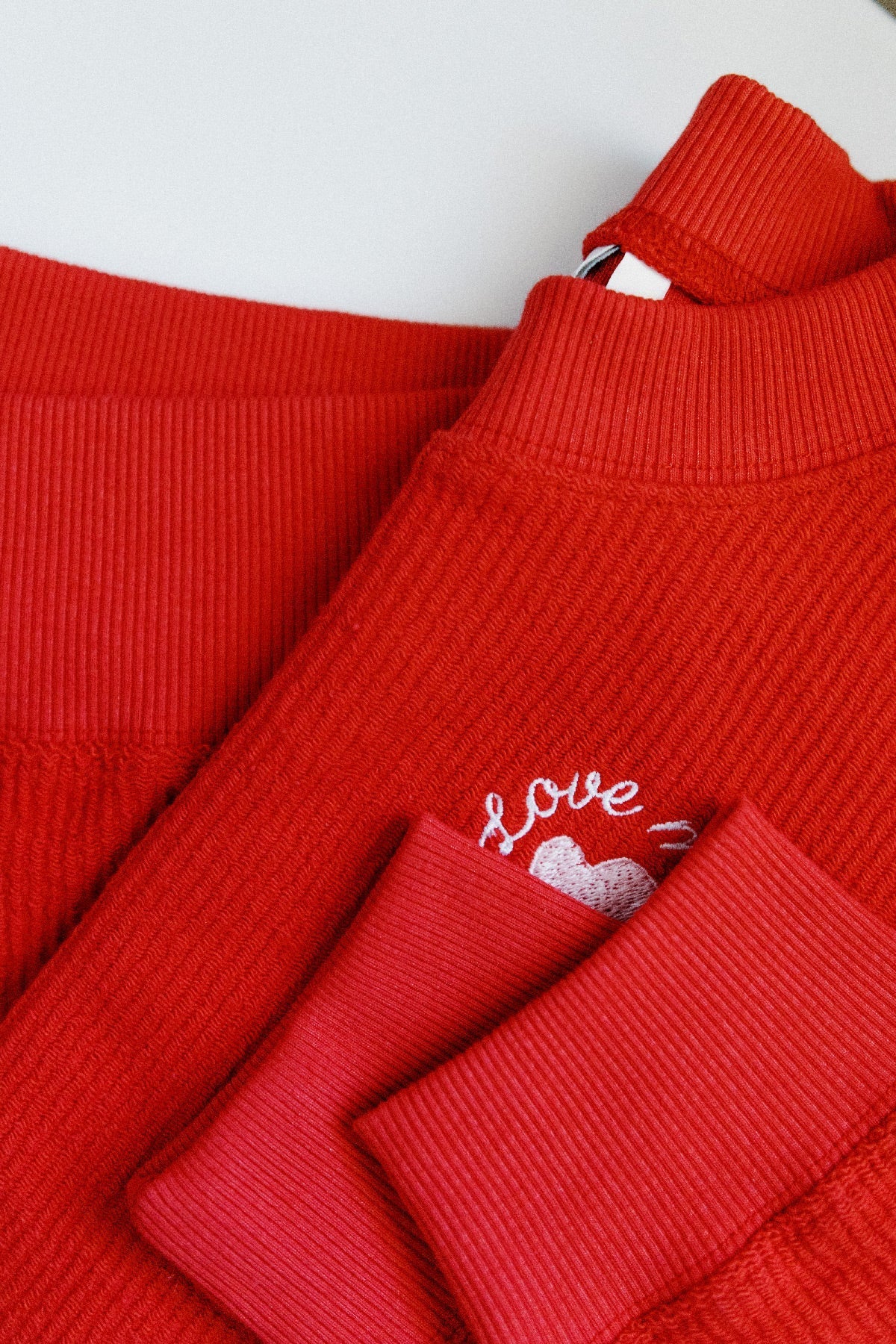 Love More Embroidered Ribbed Sweatshirt
