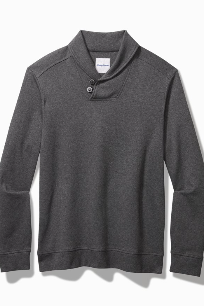 Shawl collar pullover.