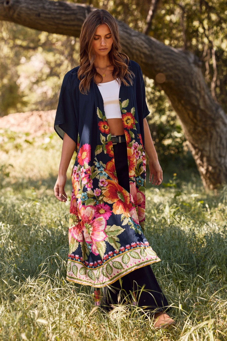 Elevate your style with the Master Piece Floral Kimono, featuring a stunning giant floral print framed by an elegant border. This versatile kimono comes with a beaded tassel belt that adds a touch of sophistication and allows you to customize your fit. Available in two beautiful colors and designed as one size fits most, it’s the perfect statement piece to enhance any outfit effortlessly.