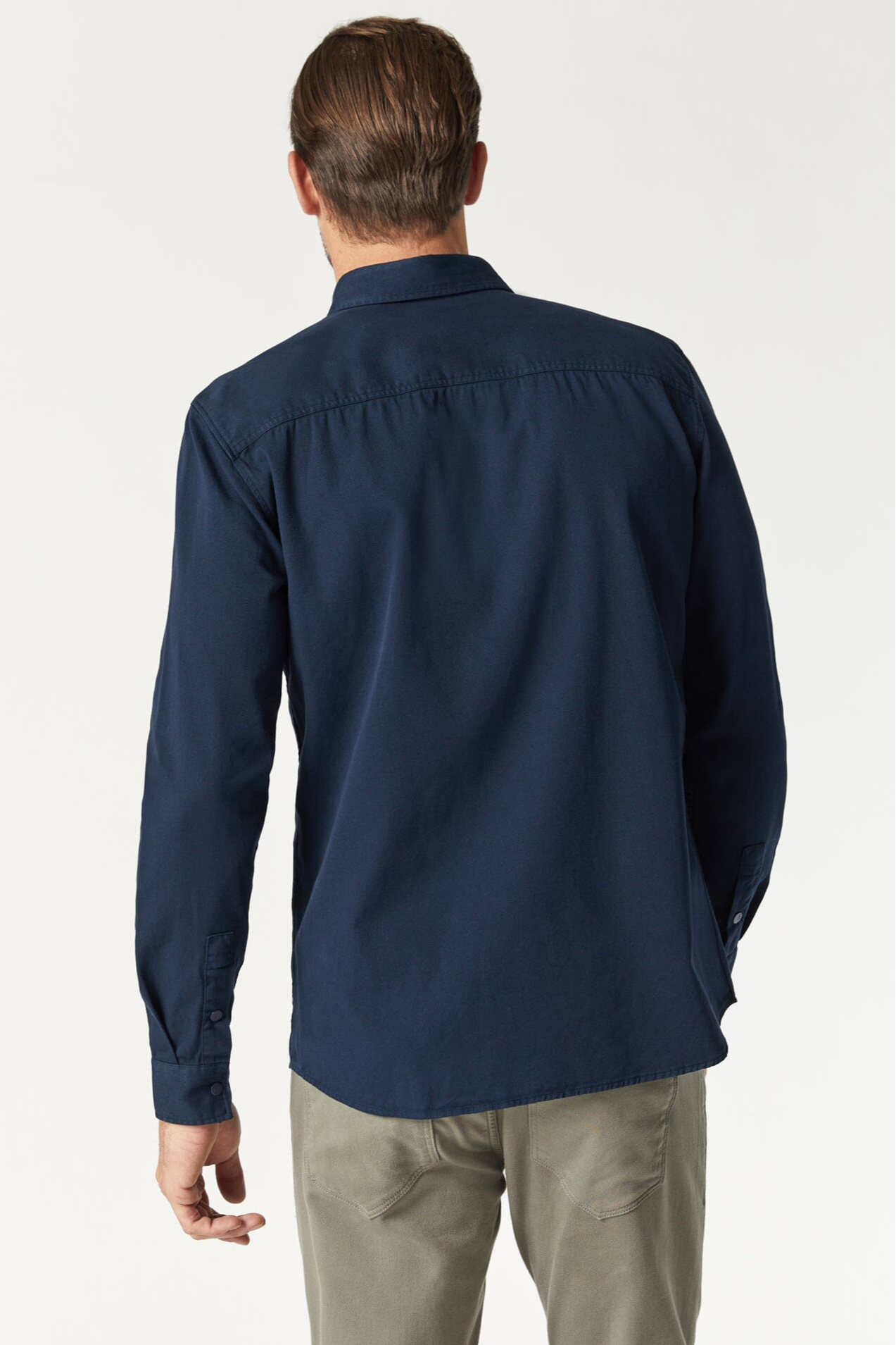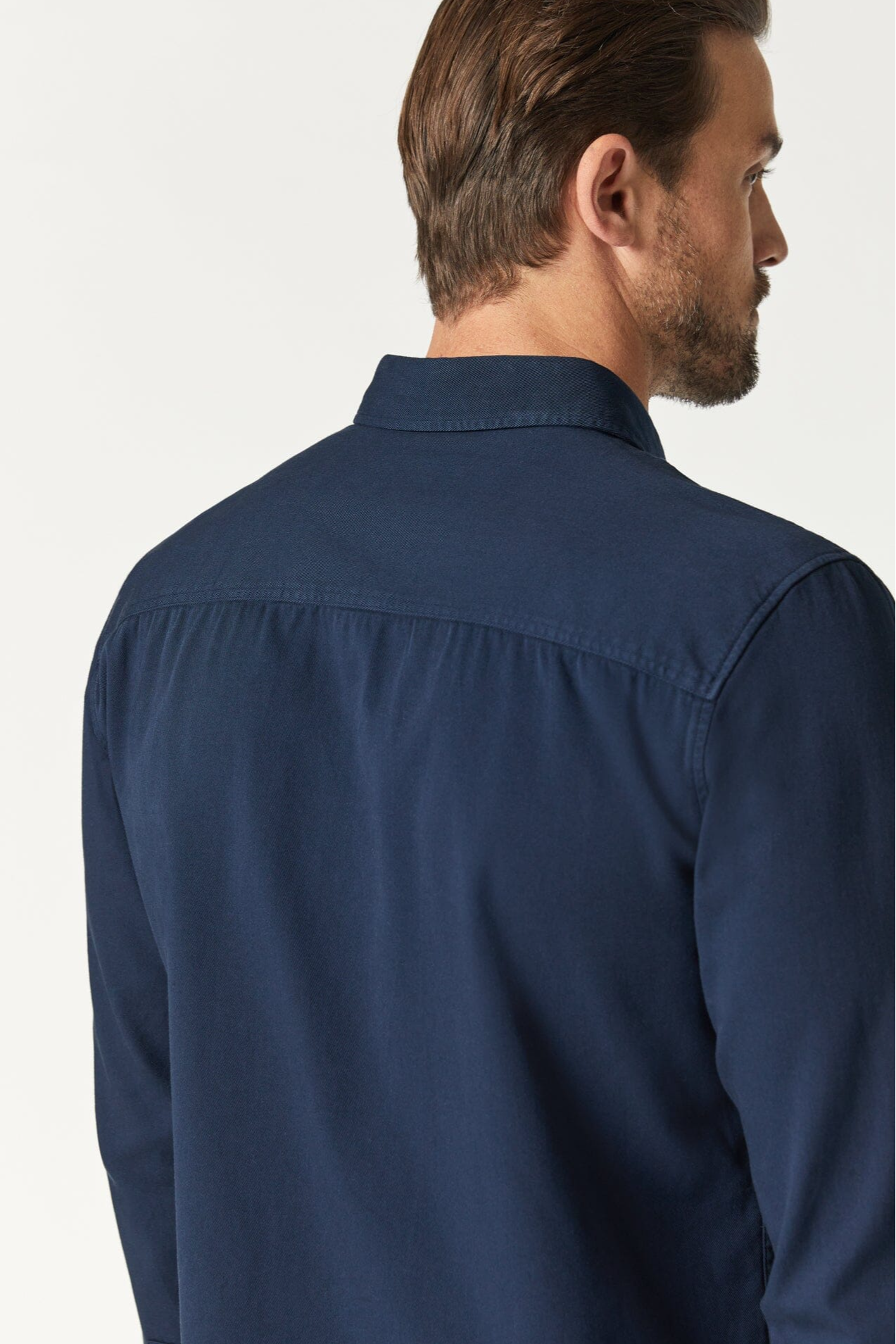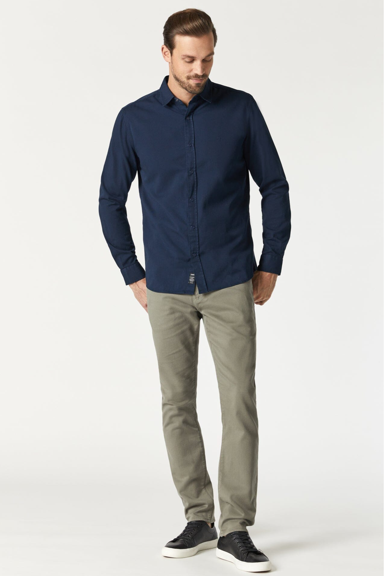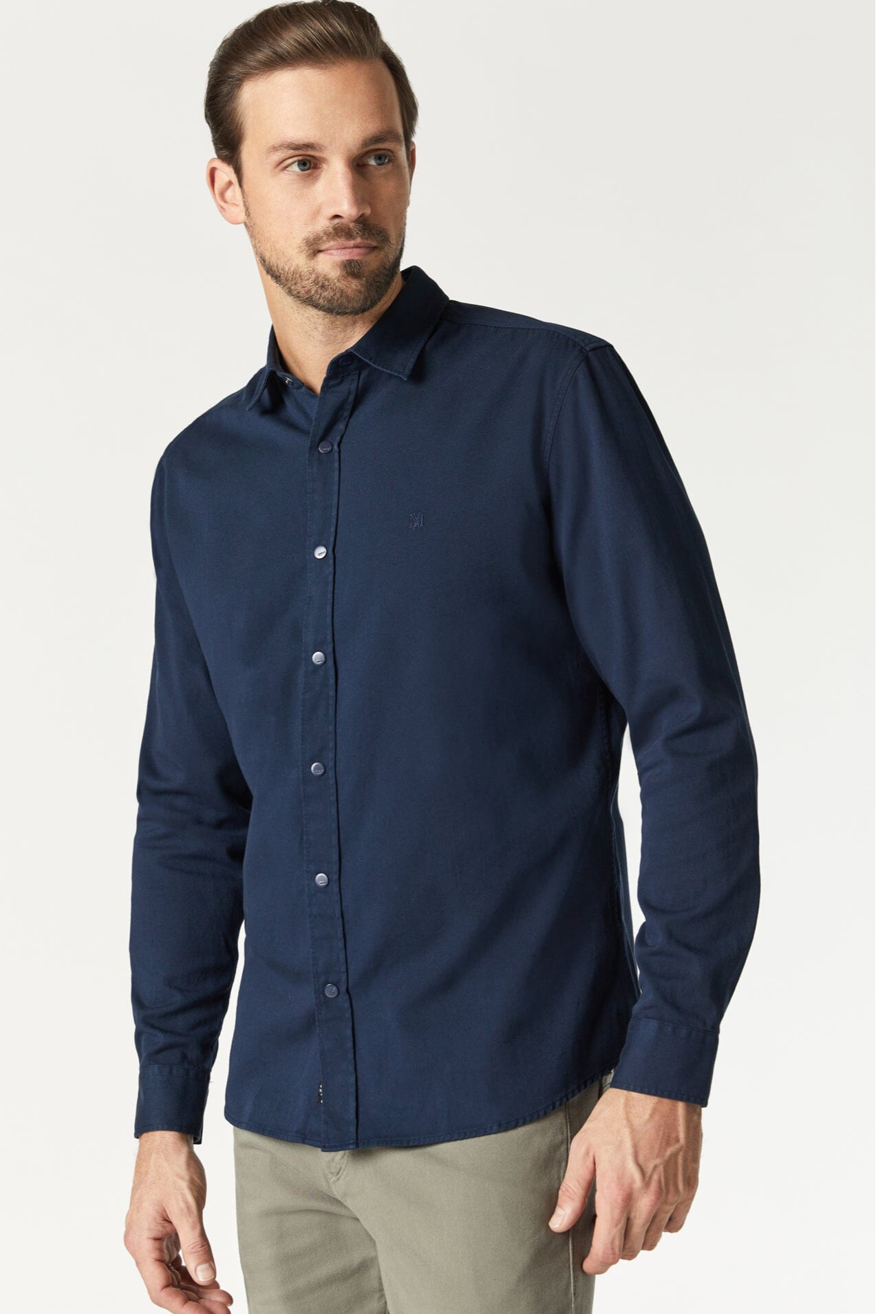 A look that’s always in style, this long sleeve collared shirt has a dark blue hue and slim fit that flatters from every angle. It’s designed with 100% premium cotton that's classic and versatile.