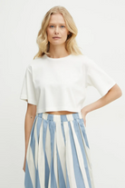 Get playful and comfortable with the Max Mara T-shirt. Sizes converted from Italian to standard European for a perfect fit (IT 38/XXS = EU XS). Made with soft and stretchy knit fabric, featuring modal for a gentle feel on your skin. Refer to size chart for the perfect fit.
