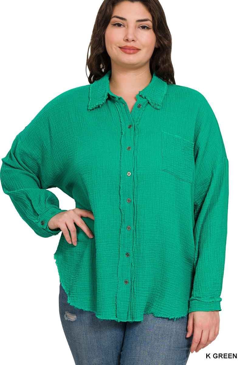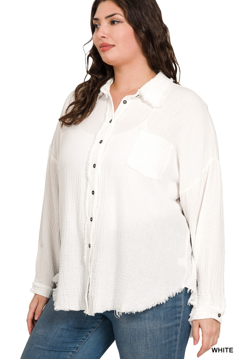 PLUS DOUBLE GAUZE OVERSIZED RAW EDGE SHIRT