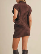 The Mocha Skirt Set features a perfect chocolate brown color, ribbed detailing and a pretty mock neck. Wear together or separate, these two pieces couldn't be better for fall!