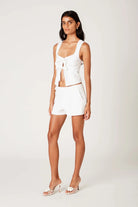 Unleash your playful side in the NIA | Carolina White Top - featuring an open front design with charming ties.