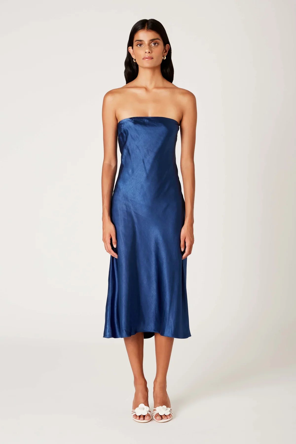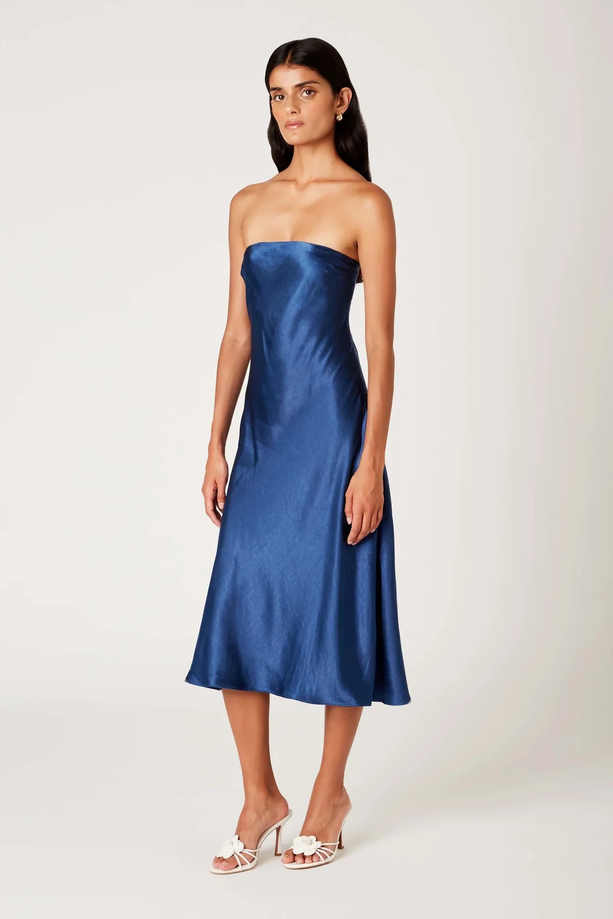 This beautiful satin dress is perfect for weddings. With a classic, chic design and elegant straps, this midi-length dress is sure to make you feel like a queen. And the convenient side zipper makes it easy to put on and take off.