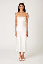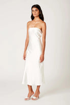Are you looking for the perfect dress for your upcoming bridal events or graduation? Look no further than the Carolyn White Dress! This classic, chic, and elegant strapless satin dress features a stretchy bodice that will keep you comfortable all day.
