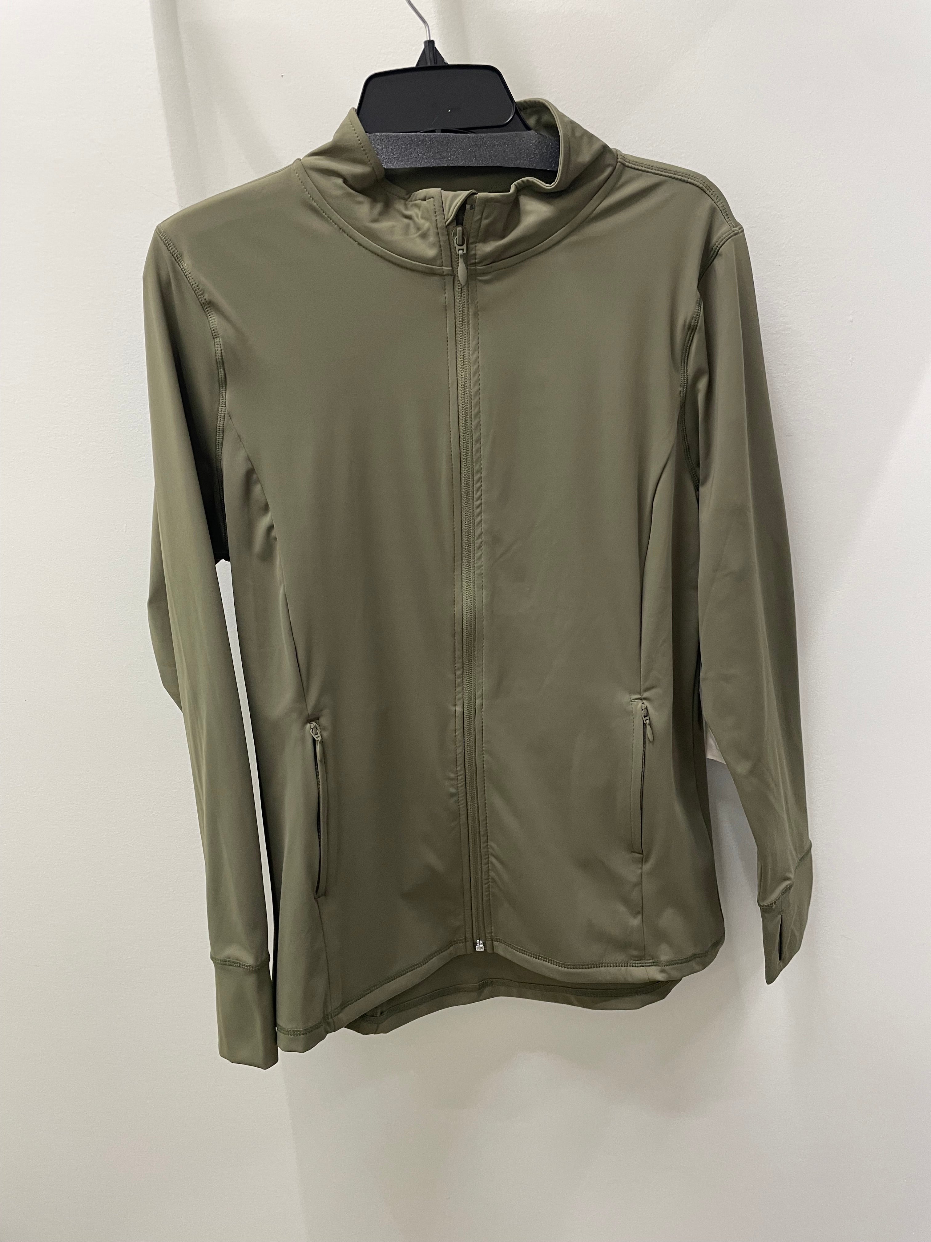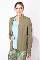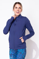 Get ready to rock your next pickleball match with the On The Move Jacket by Escape! Part of the Escape by Habitat collection, this sporty jacket is perfect for on or off the court with its stretchy fabric and stylish design. The stand up collar, thumb cutouts, and princess seams not only provide a flattering fit, but also make it endlessly useful year round. So whether you're playing pickleball or just enjoying the outdoors, this jacket has got you covered! Plus, the tranquil marble pattern and zipper close side pockets add a touch of style to this functional piece.