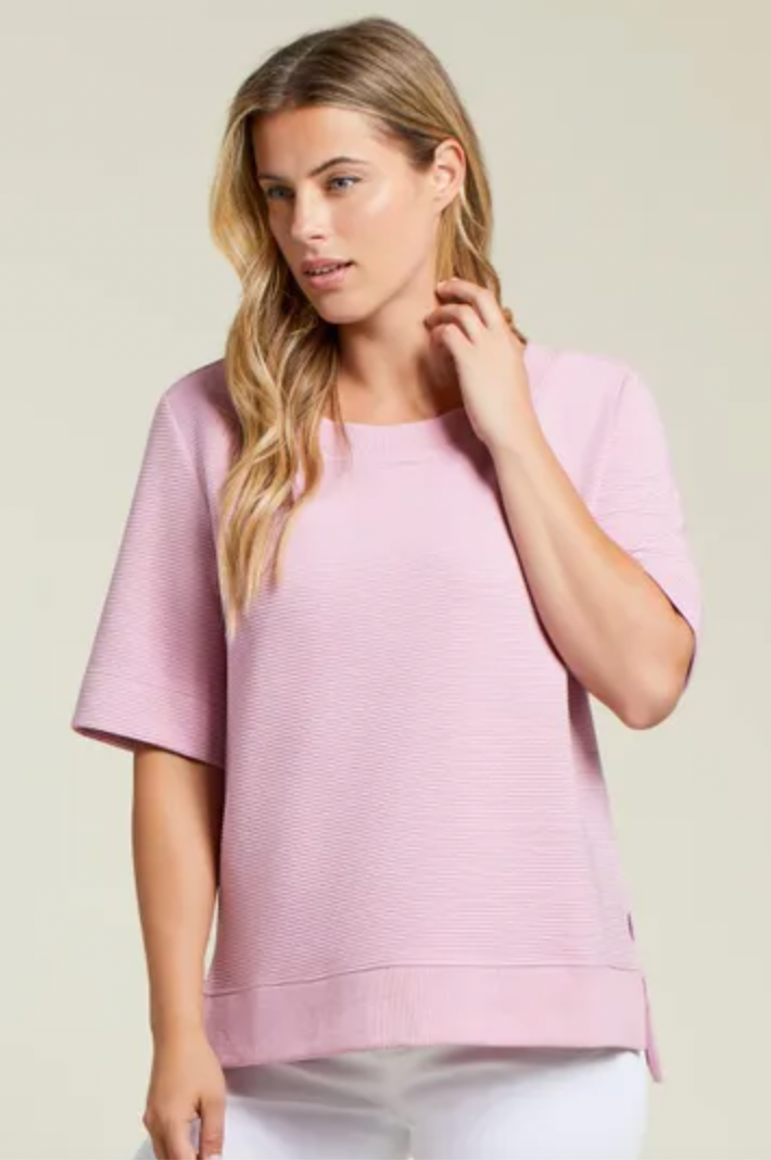 We all love a casual piece that presents an effortless pulled-together style which is why we're infatuated with this flowy-fit tee. A breezy boat neck and elbow-length sleeves keep you cool when it matters most, and the hi-low hem with side slits furthers that ventilation on warm-weather days. You'll be exuding cool comfort without missing a beat.