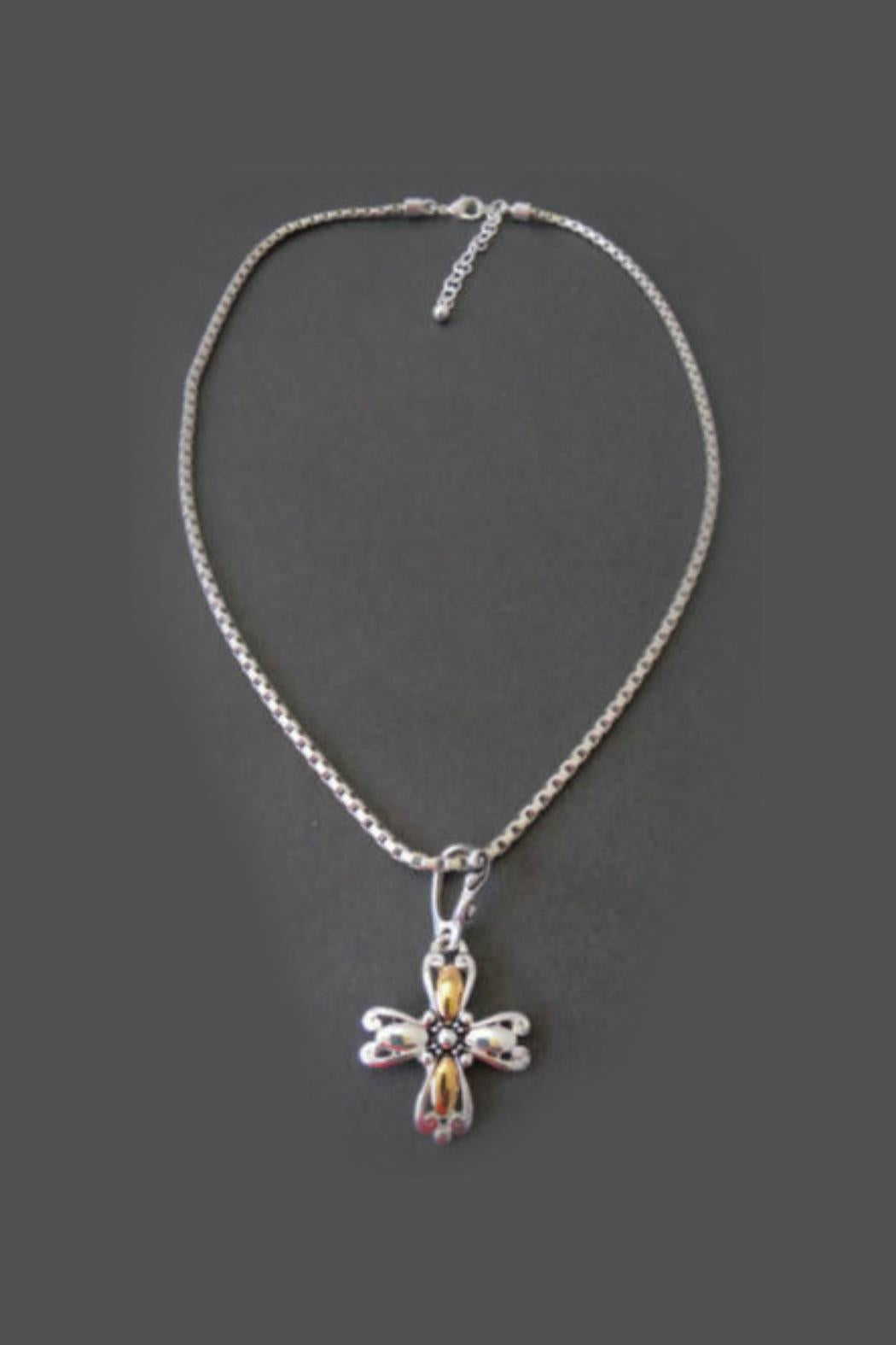 This is the Premier Designs Deborah Necklace. It has a stunning cross made of silver plate metal with gold plated trim, that gives it a timeless classic look. This necklace will be your "go-to" favorite you can wear with anything you want to wear! Necklace will arrive in a boutique gift box. Find more affordably priced jewelry on the "Mimi's Gift Gallery" boutique page. Measurements: Chain is approximately 18", and there is a 2" extender. Pendant and bail are 1.75" high and 1" across.