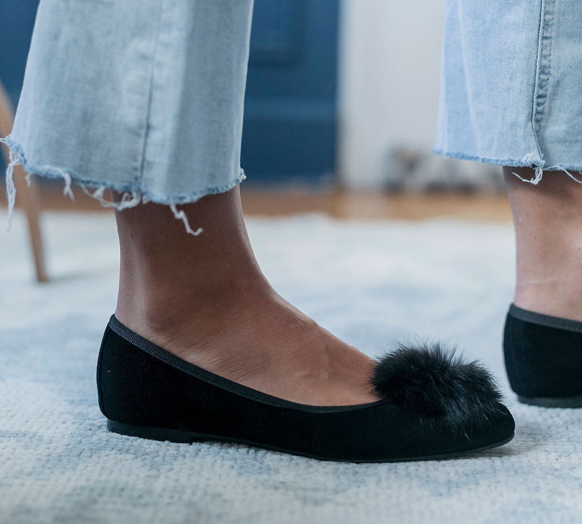 A softer take on ballet flats, crafted from genuine leather and topped with a fluffy pom pom.