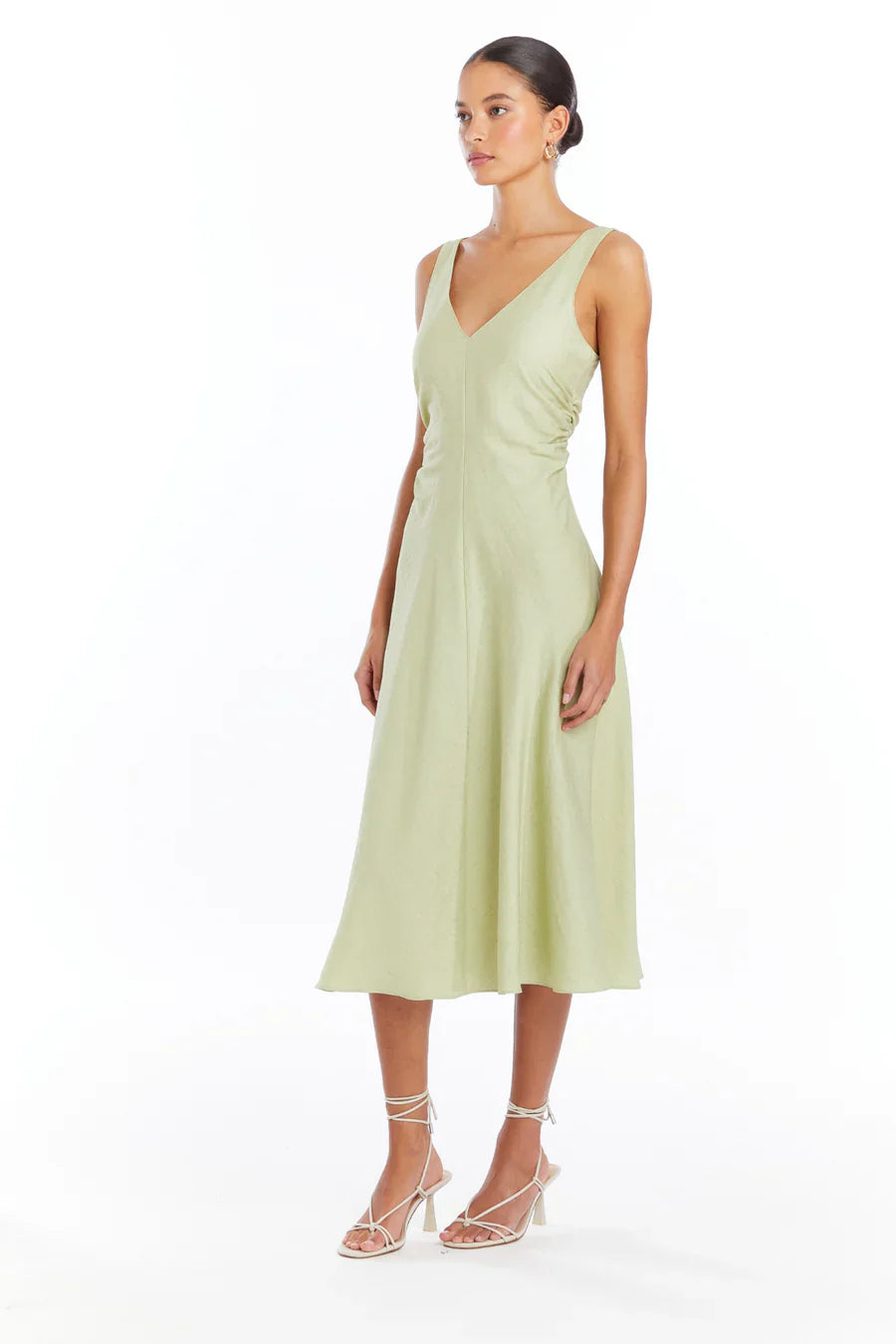 This Amanda Uprichard Sabal dress is featured in an airy linen material. The aloe color is perfect for summer.
