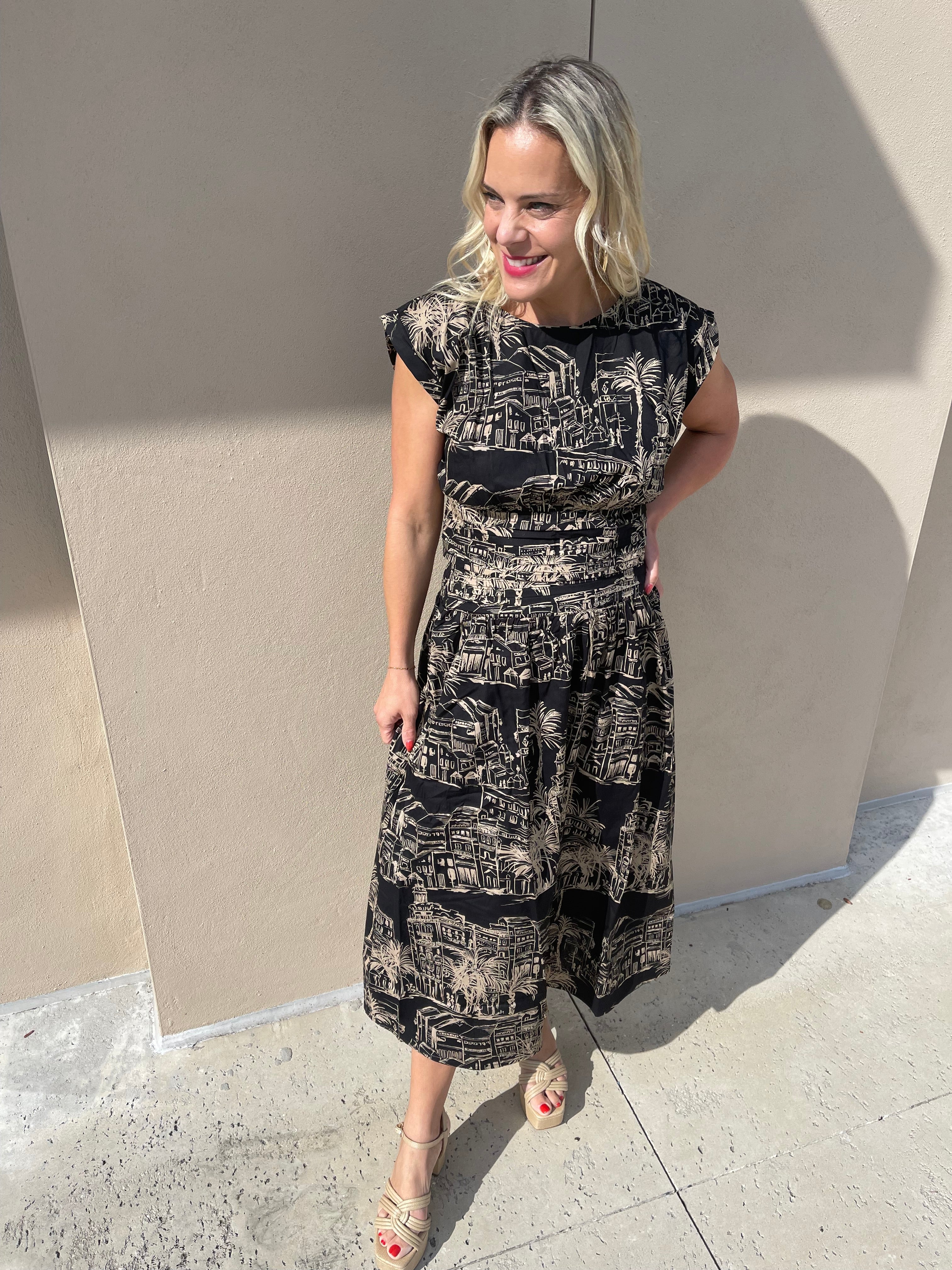 Crafted from lightweight woven fabric, the top features a cropped cap sleeve top with a wide ruched waistband for a flattering fit. This is a great style to pair with high waisted jeans or pants.