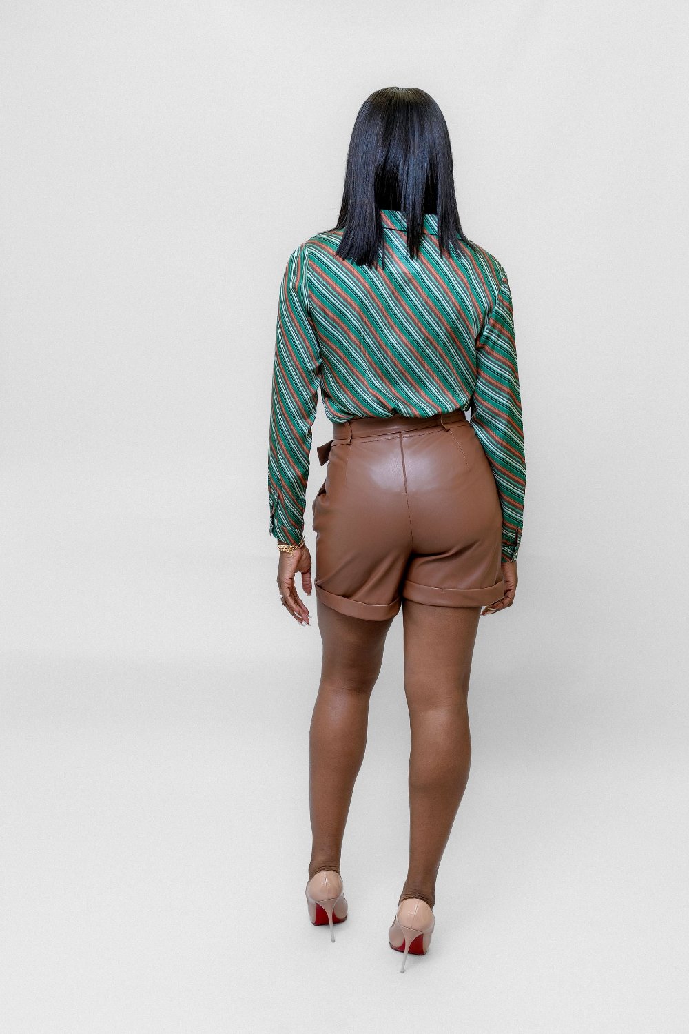 Elevate your wardrobe with our Savannah Top. This luxurious chiffon top boasts long sleeves and green stripes for a sophisticated touch. Perfect for any occasion, elevate your style and exude elegance with this exclusive piece.