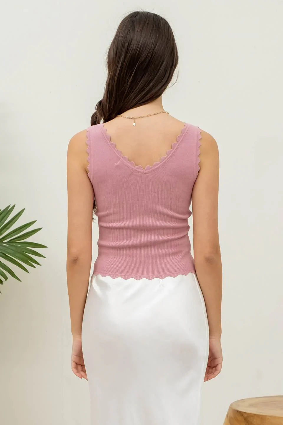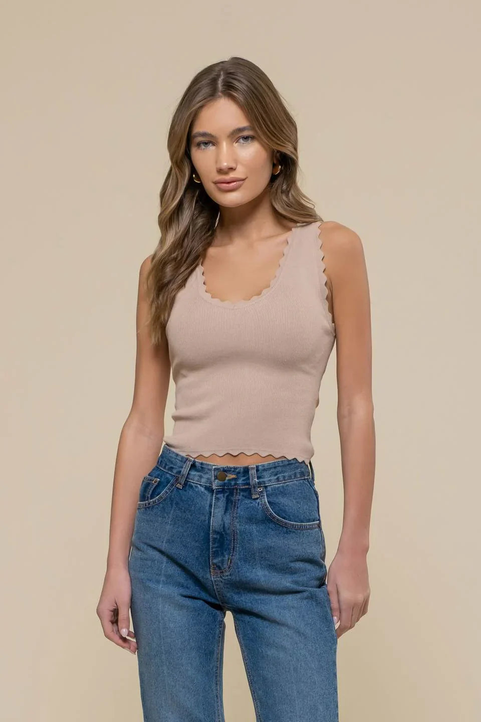 Get ready to make a splash in our Scallop Edge Knit Tanks! With a V neckline and sleeveless design, these tanks are perfect for layering. The scalloped edge adds a touch of fun and flair to any outfit. Dive into style with these versatile tanks!