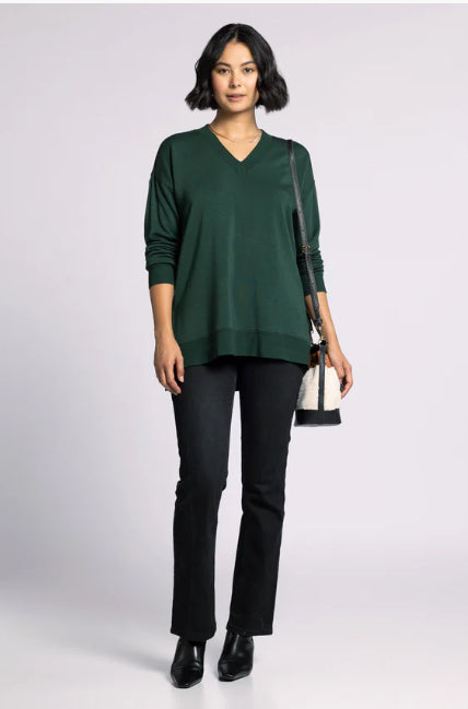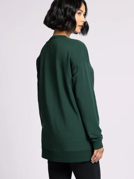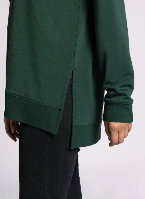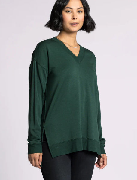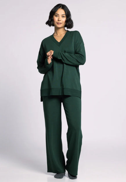 Totally chill and comfy in every way, this pullover is featured in the perfect oversized silhouette and soft fabrication, complete with a v-cut neckline and side slits. Wear with the matching Scarlett Pant for the perfect lounge set.