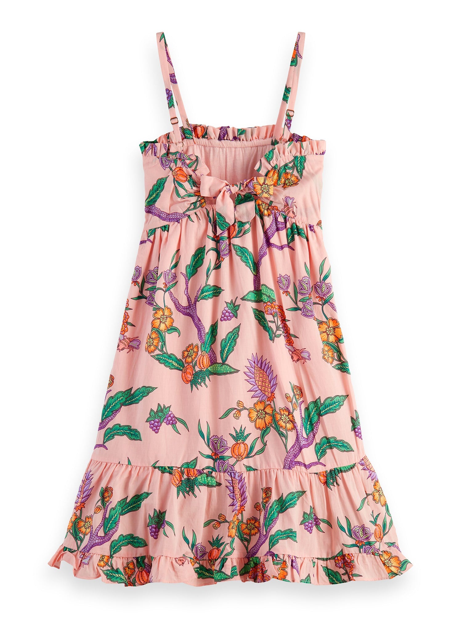 •LOOK: New from Scotch and Soda is a dainty sundress that will look amazing on your future fashionista. Made of cotton, it has spaghetti straps and fashionable smocking. The a-line shape has a sweet ruffle at the hem. She will look outstanding in this piece during any summer party this season. Complete the look with a great floppy hat, sunglasses and sandals. She is now ready to walk the runway in high style. Lined.