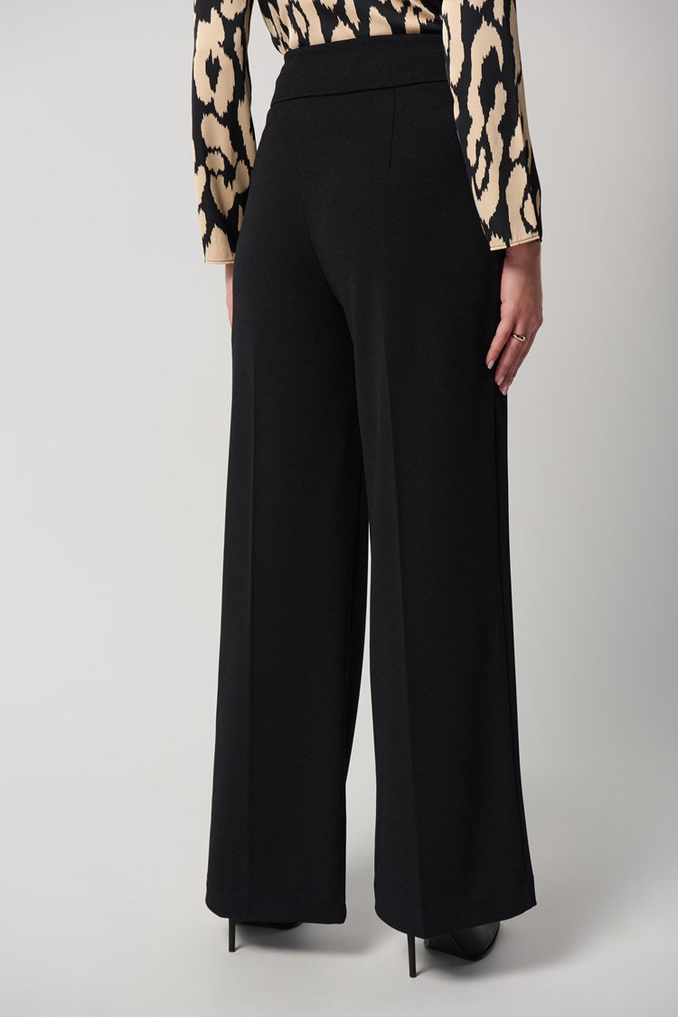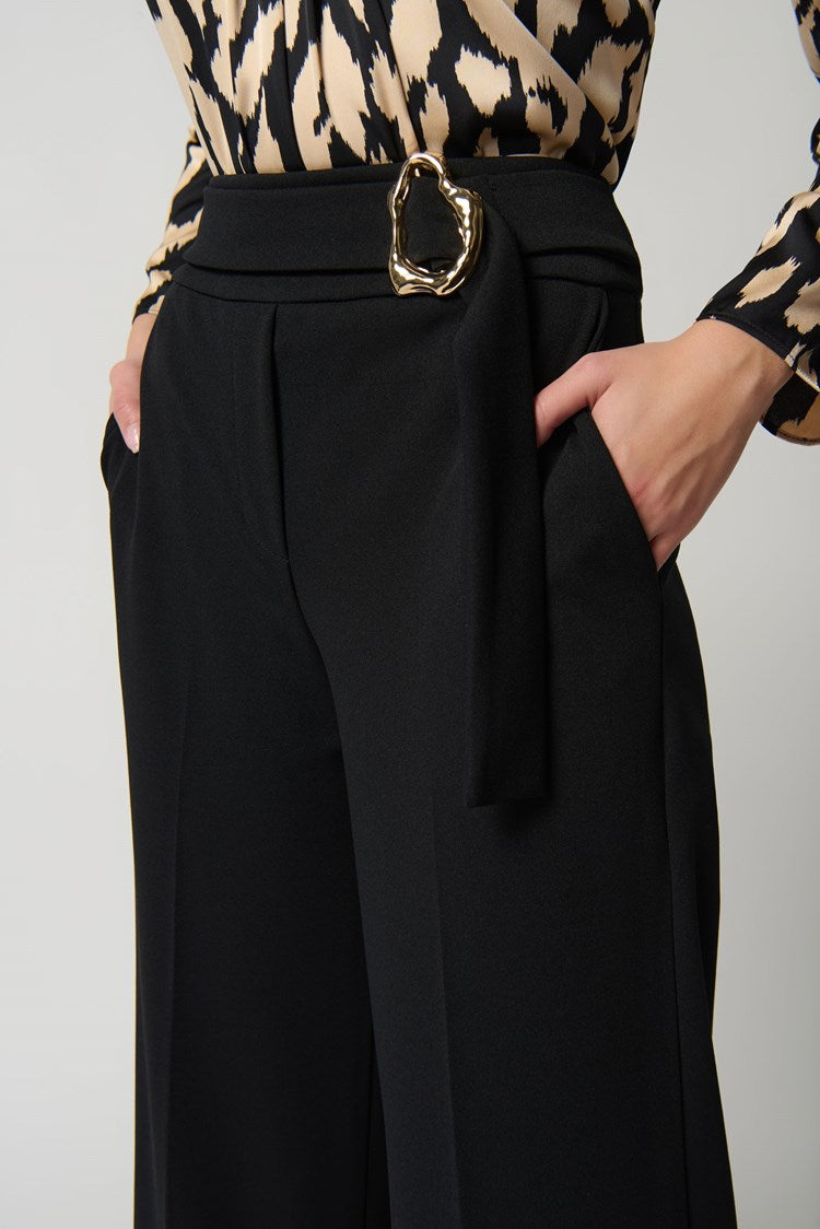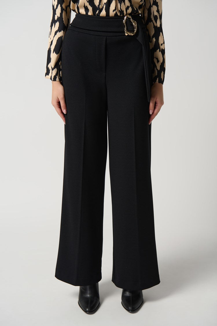 he scuba crepe fabric lends exquisite dimension to these airy wide-leg pants, finished with a sash and a buckle at the waistband. The structured contoured waist enhances these timeless pants that are perfect for work days or evenings out.