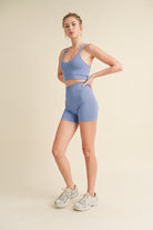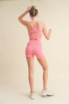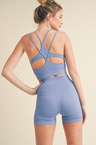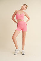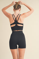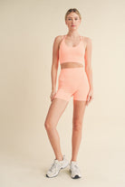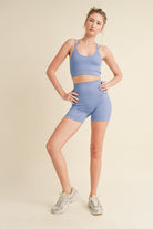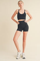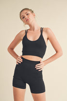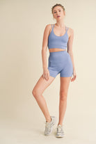 This seamless two piece set features a cropped tank for a comfortable and form fitting silhouette. Its compressive design provides support and a sleek look. Perfect for workouts or casual wear.