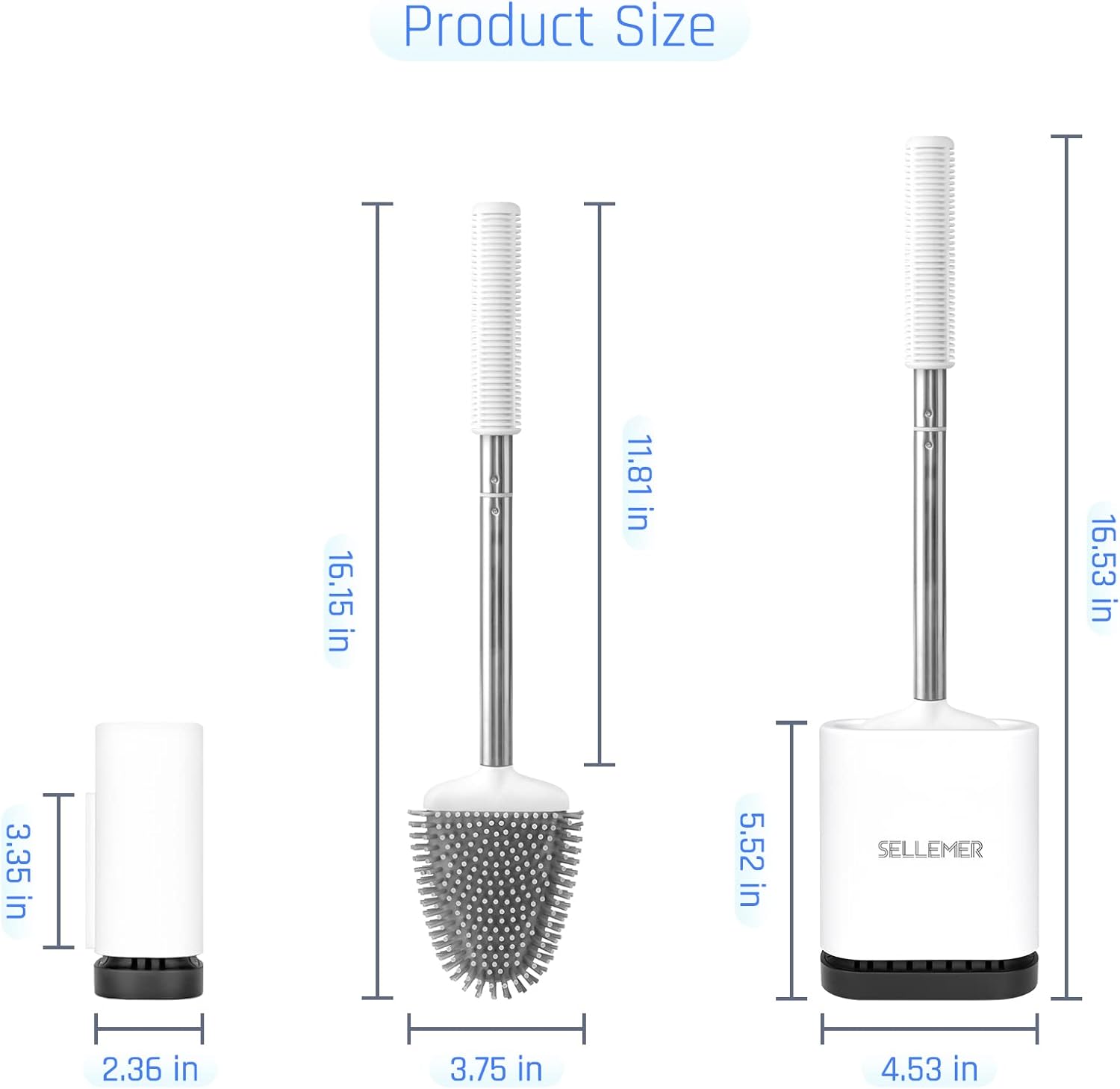 - No Hair Tangling Troubles: Larger bristles make it not easy to entangle hair and other dirty foreign objects. Getting rid of hair by simply rinsing the brush head. Save your time fixing cleaning problem and hair-tangling troubles. Instead of using plastic bristles, Sellemer Toilet Brush uses silicone bristles, which can keep toilet bowl from being scratched also