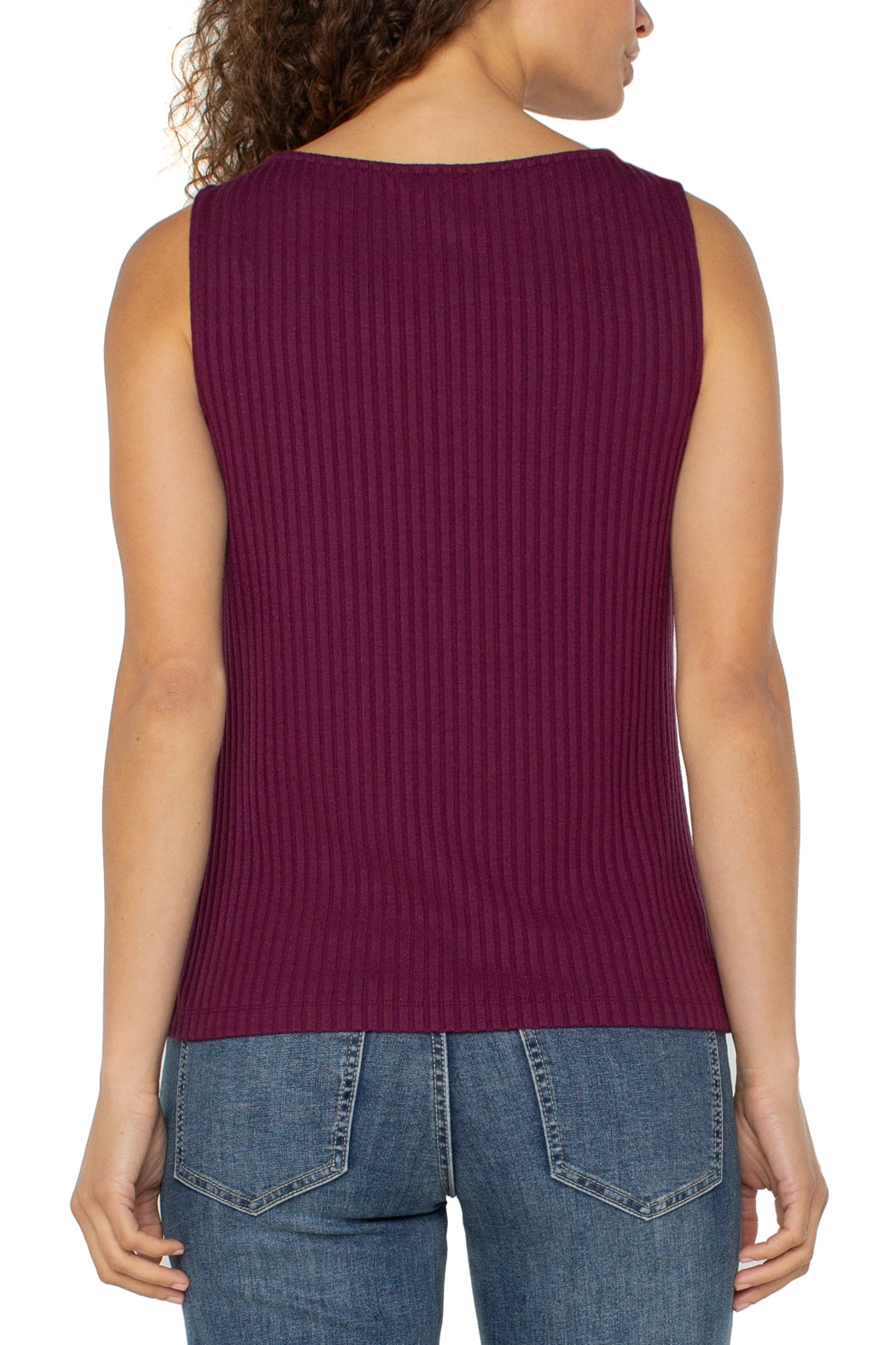 A refined essential crafted for maximum versatility. This sleeveless rib-knit top showcases a flattering boat neckline and is made from soft, stretch-enhanced fabric that offers a smooth, body-hugging fit. Wear it on its own for a sleek, minimalist look or layer it under jackets and cardigans. Available in a range of colors to complement any style or season.