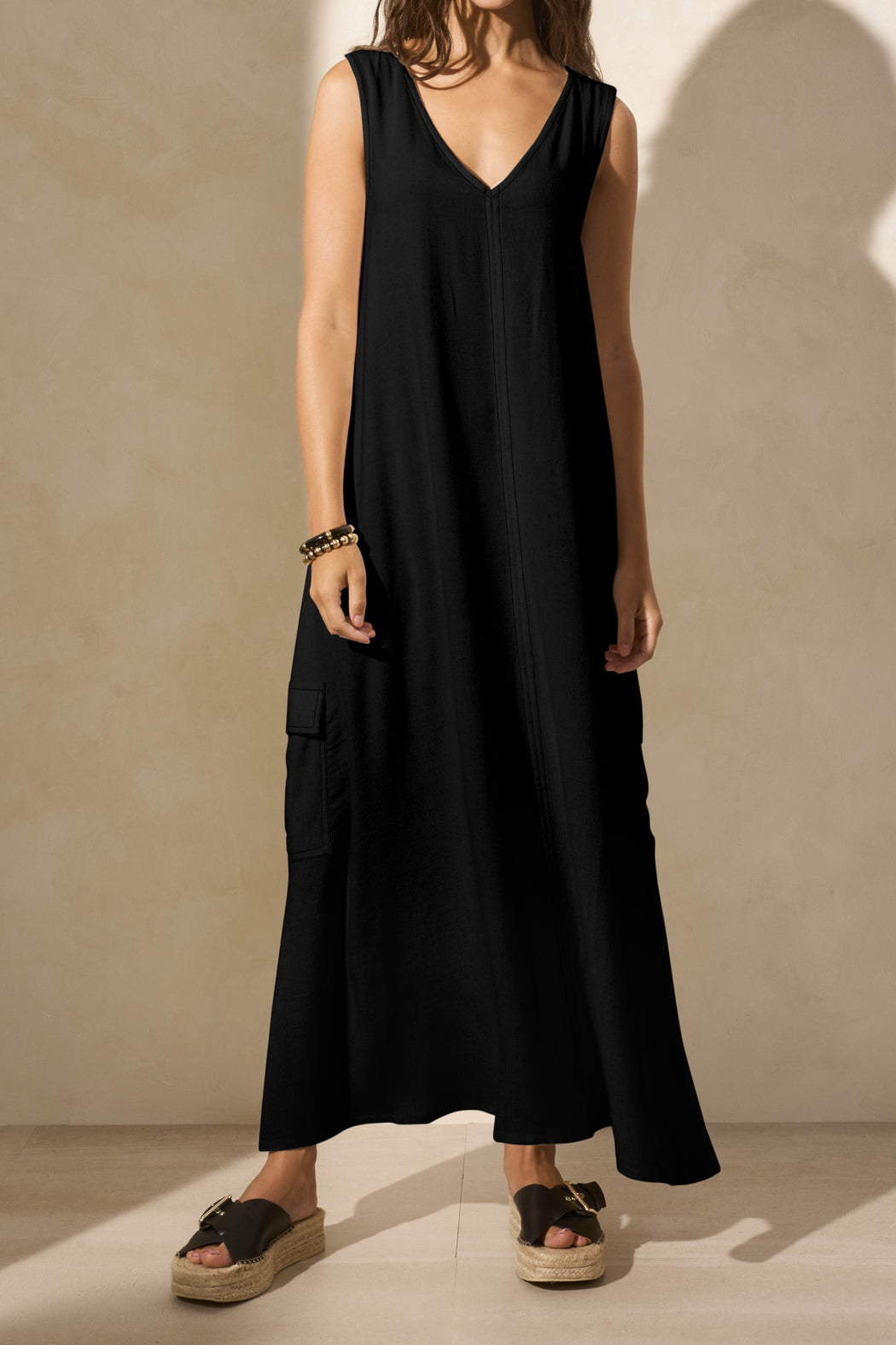 Sleeveless Cargo V Neck Dress