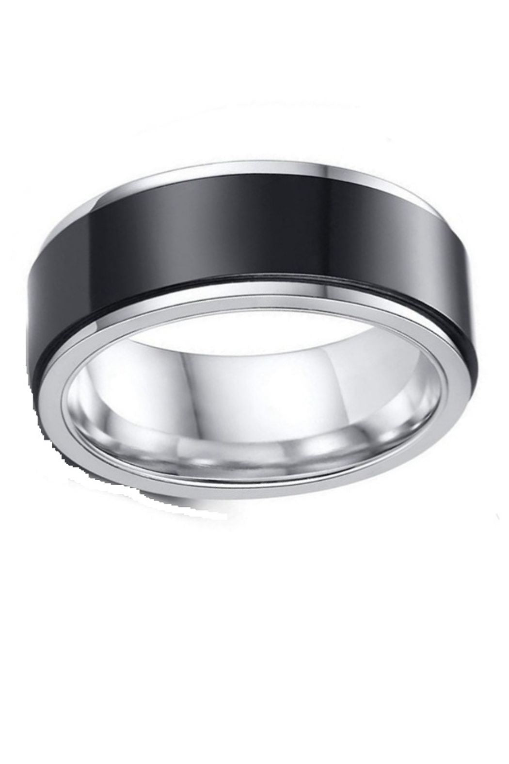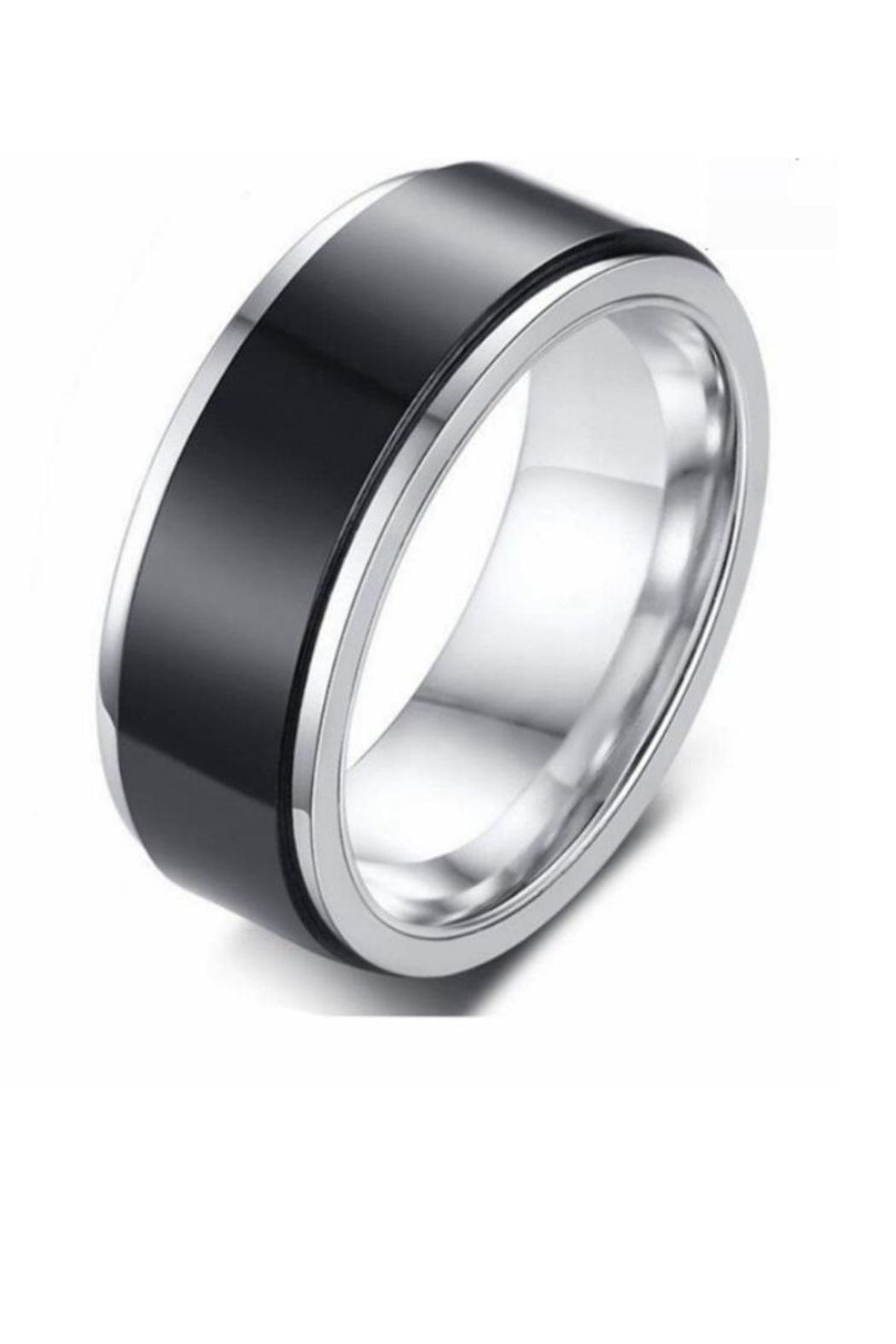 Spinner Ring For Men Silver & Black Engagement Ring Wedding Band Anxiety Relief