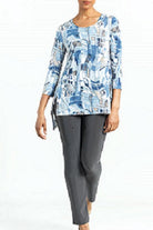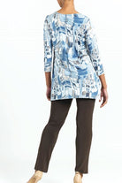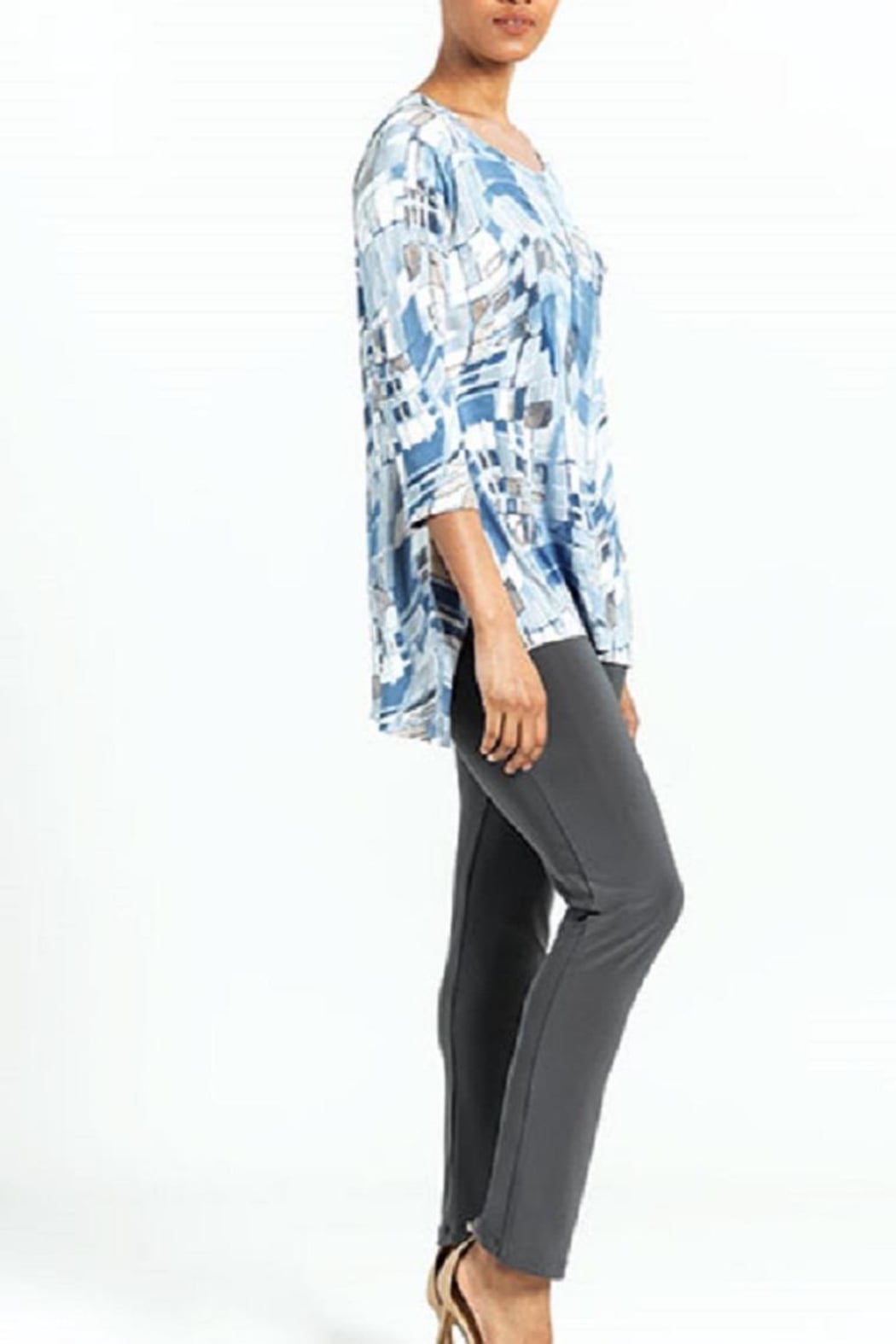 This NWT flowy tunic top by famous mother and daughter design team Clara Sunwoo has a scoop neckline, 3/4 sleeves, side slits that flow and flatter around the body in a most flattering way. Colors of light blue, grey, taupe, cream and a bit of black make this top a great neutral that can be worn with just any bottom of your choice. Try cream or grey for a refreshing style.