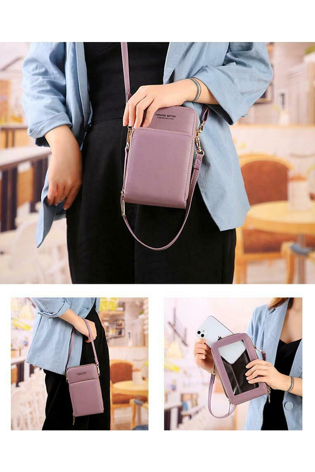 Touchscreen Purse With 3 Separate Compartments - Pink, Purple, Gray