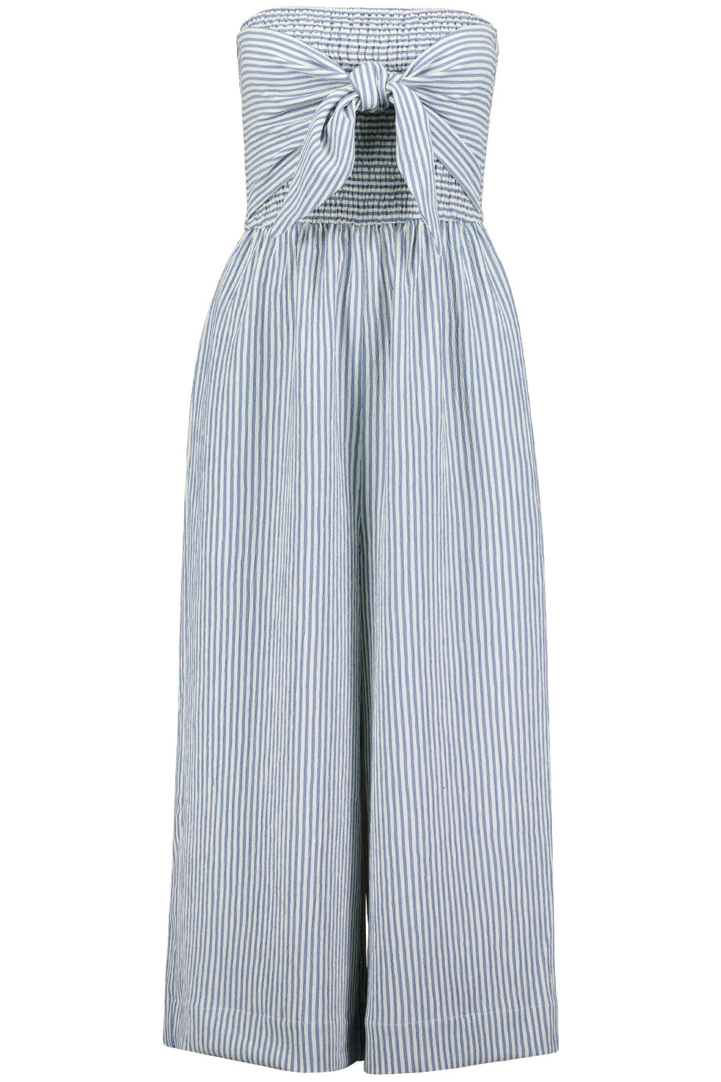 Some things are as easy as a jumpsuit. The Elva Tie Front Jumpsuit features a tie front detail over its form-fitting smocked bodice, finished with wide leg silhouette and side pockets. Slip on some sandals and you’re ready out the door.