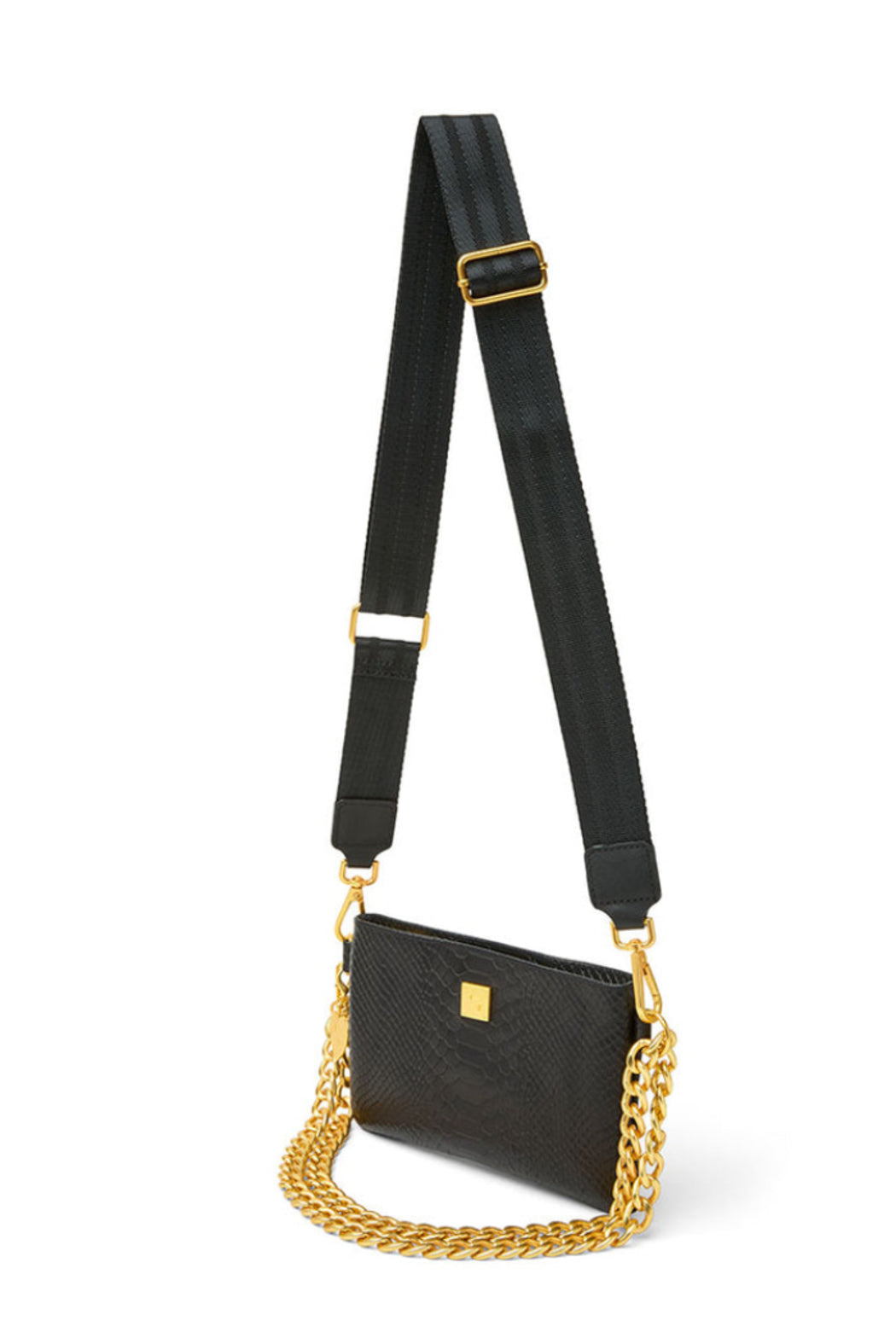 -Use gold chain as an accessory when worn with web strap or clutch
