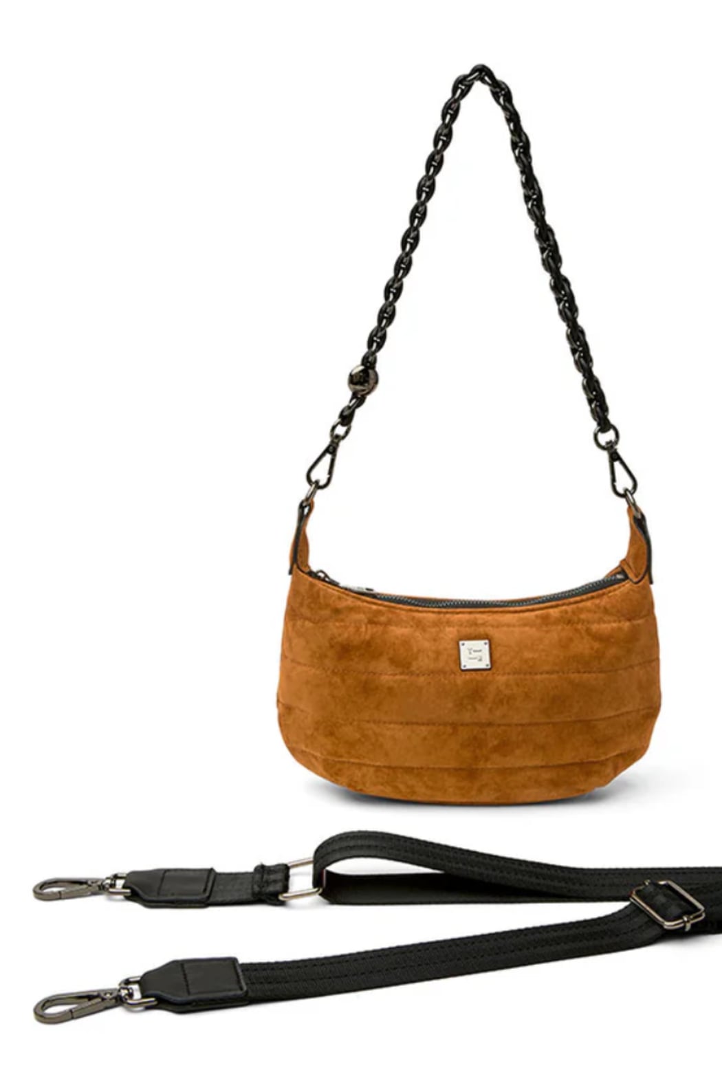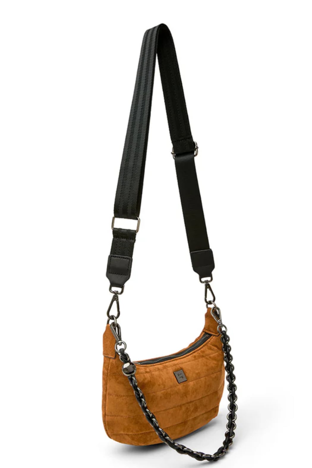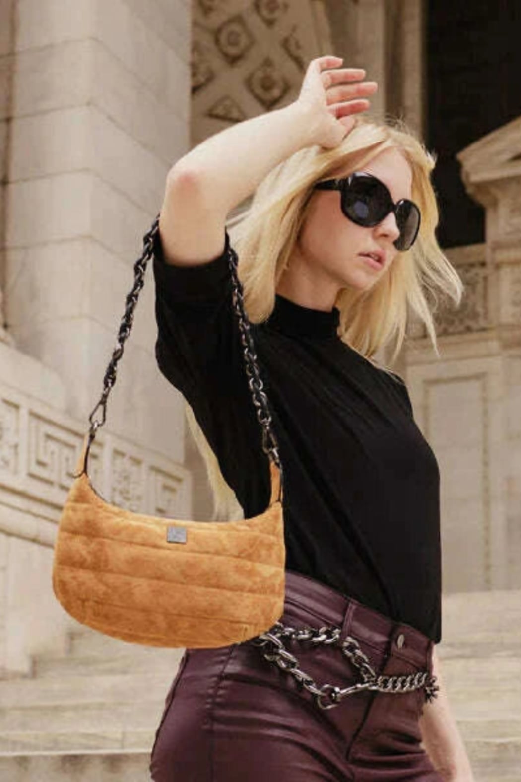 Our signature quilting elevates to the next level in plush luxe suede. Wear it your way with the detachable woven luxe and chain strap…