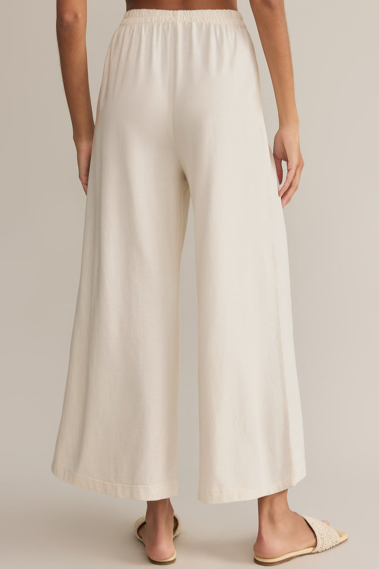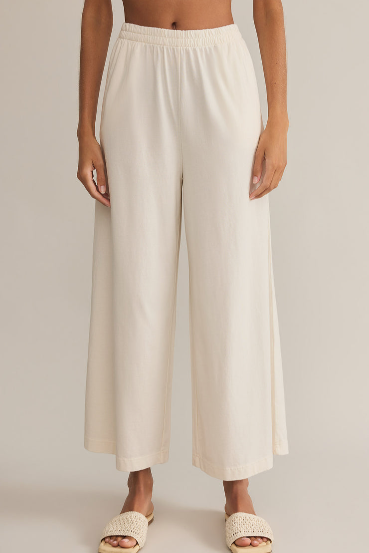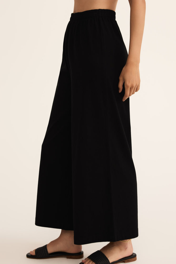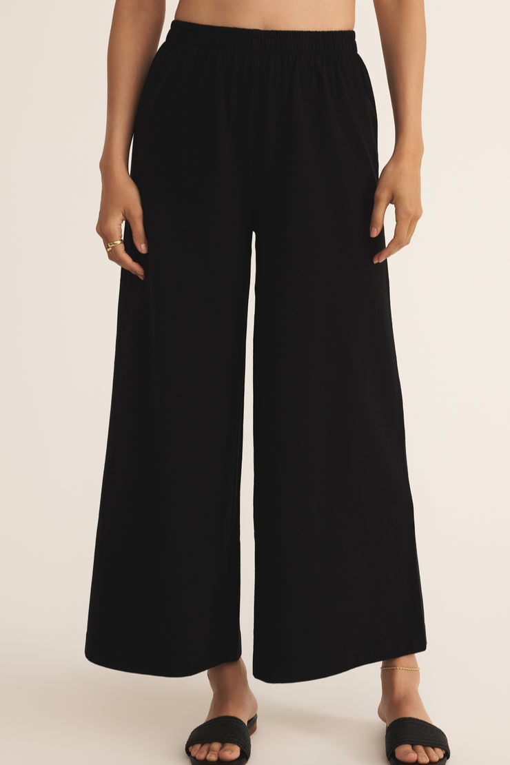 This flare pant is made with a 100% cotton jersey knit fabric and features a wide flare silhouette with an elastic waistband. This pant is a relaxed but stylish piece that looks so good with any of our everyday tops.