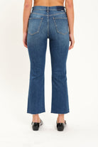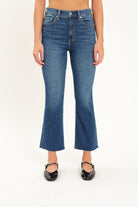 In a crisp, medium wash with a slight crop and distressed hem, the Shy Girl is a cropped flare that can be worn with any kind of shoe. Constructed in our "Tough Love" denim, it makes it look like an authentic vintage fit - mostly rigid but yields to your body in all the right ways.