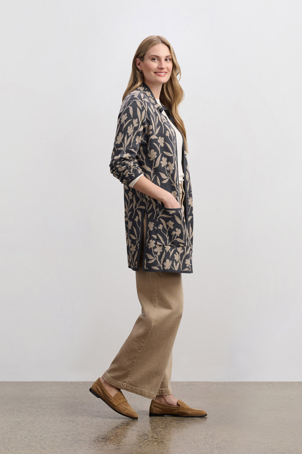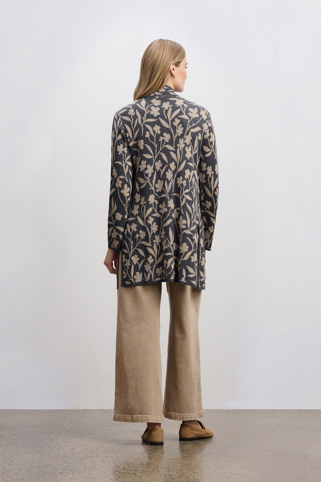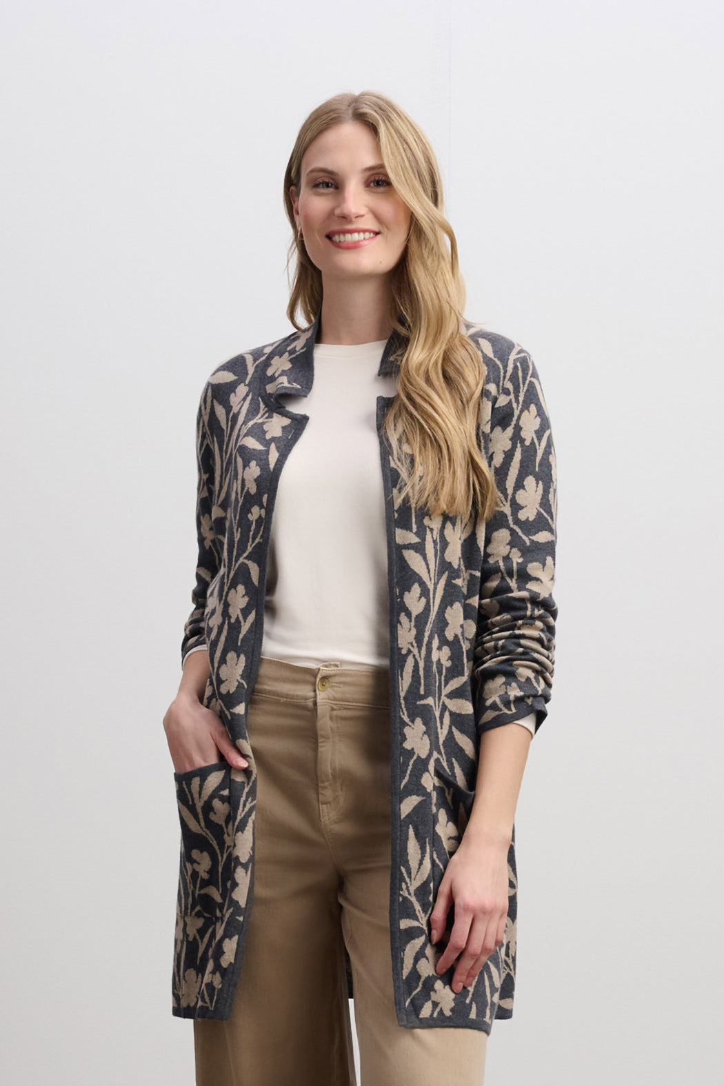 This black floral vines sweater blazer is a chic and versatile addition to your wardrobe. Made from acrylic and nylon, it offers a soft feel and a structured fit. The floral vines pattern adds a subtle touch of style, making it perfect for both professional and casual settings.