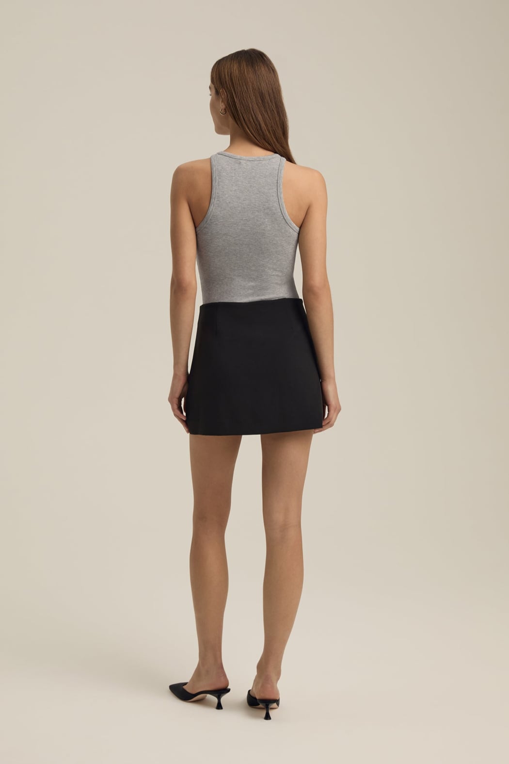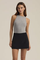Sunshine on your shoulders. Our rib stitch sleeveless bodysuit has cutaway shoulders and a high crewneck for the most perfect fit. Because it’s crafted from a stretchy knit with a snap button closure, this easy-to-wear wardrobe stable keeps its sleek shape. FIT INFO Mia is 5'9.5" wearing size XS 96% Rayon, 4% Elastane
