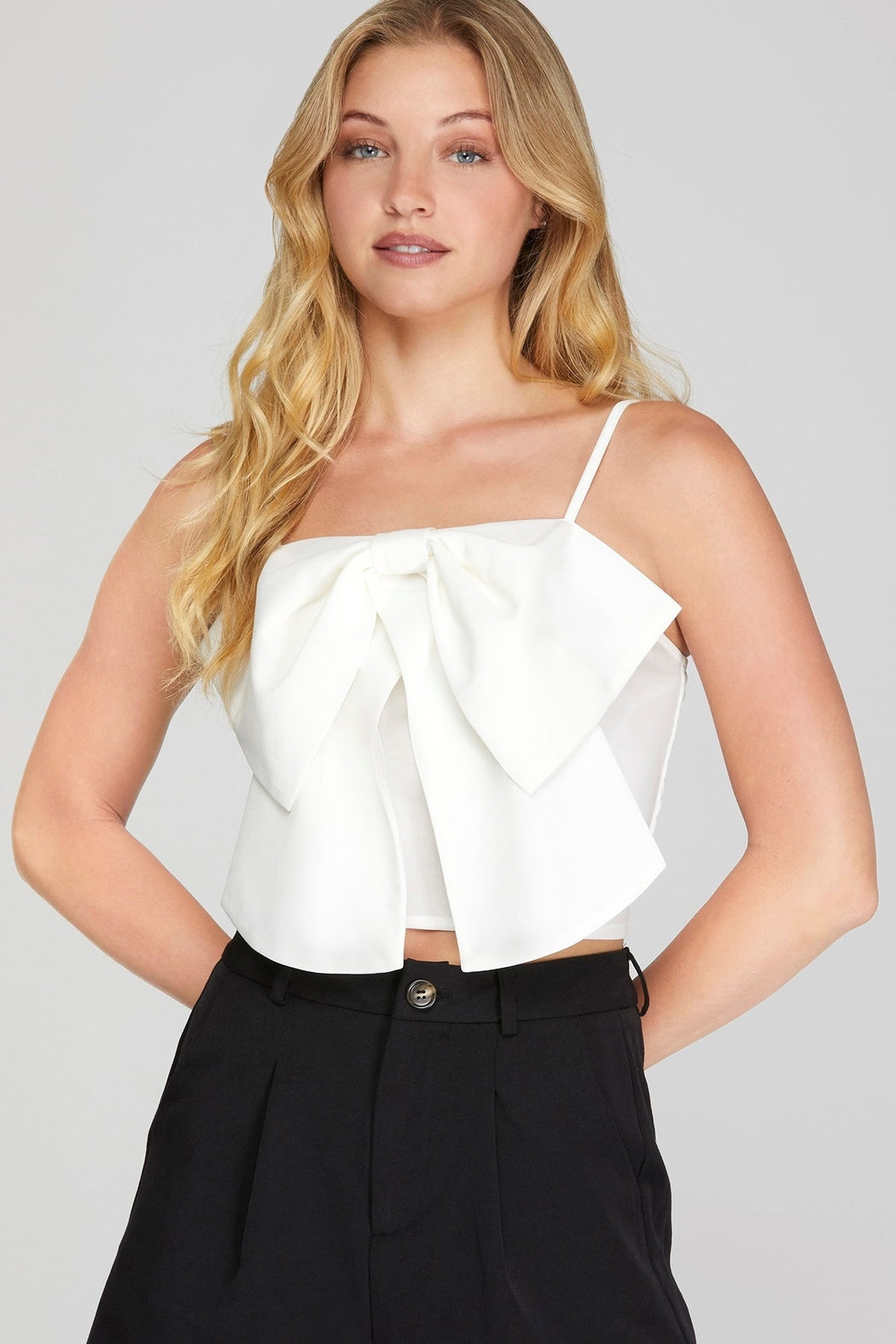 How cute is this bow knit top? It has a smocked back that makes it comfortable to wear all day. It can easily be paired with any kind of pant or skirt. This is perfect for any fun occasion you have coming up.